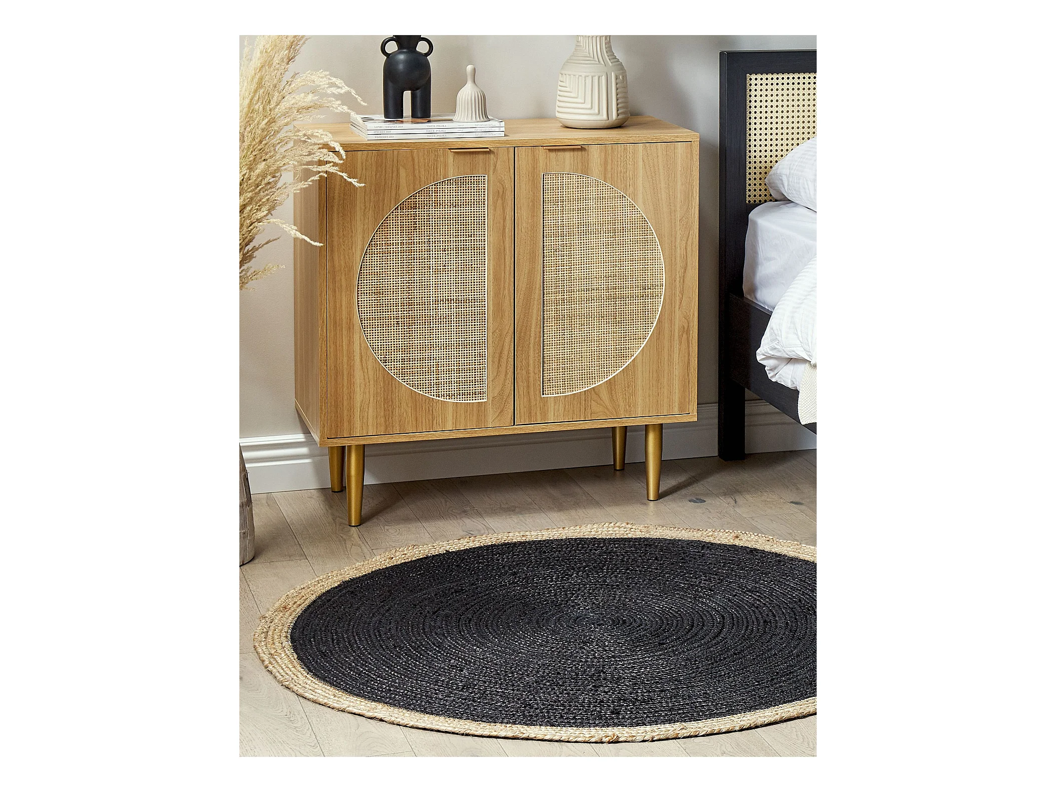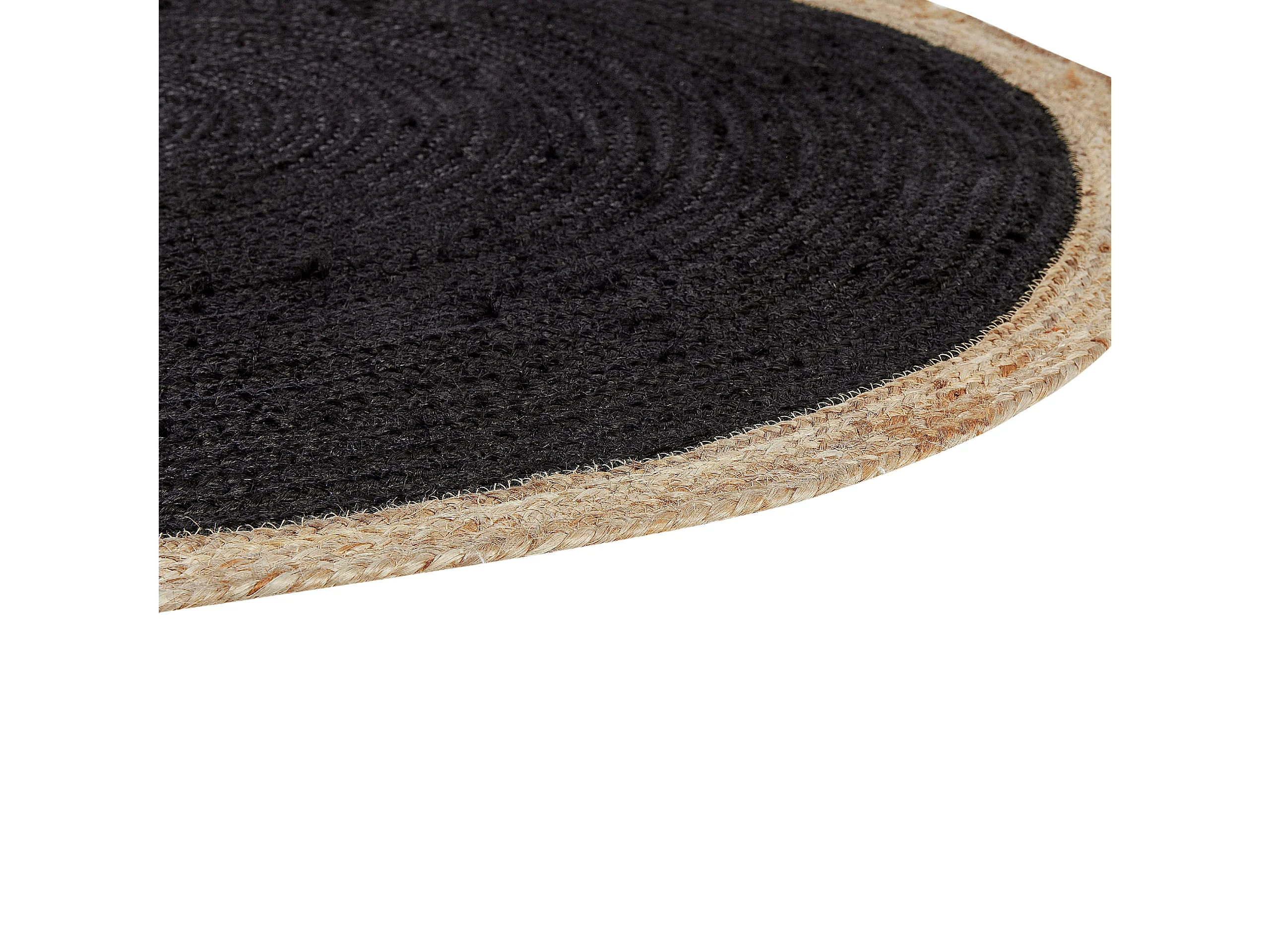 Teppich Jute schwarz rund ⌀ 120 cm hangewebt natürlich Boho Menemen
