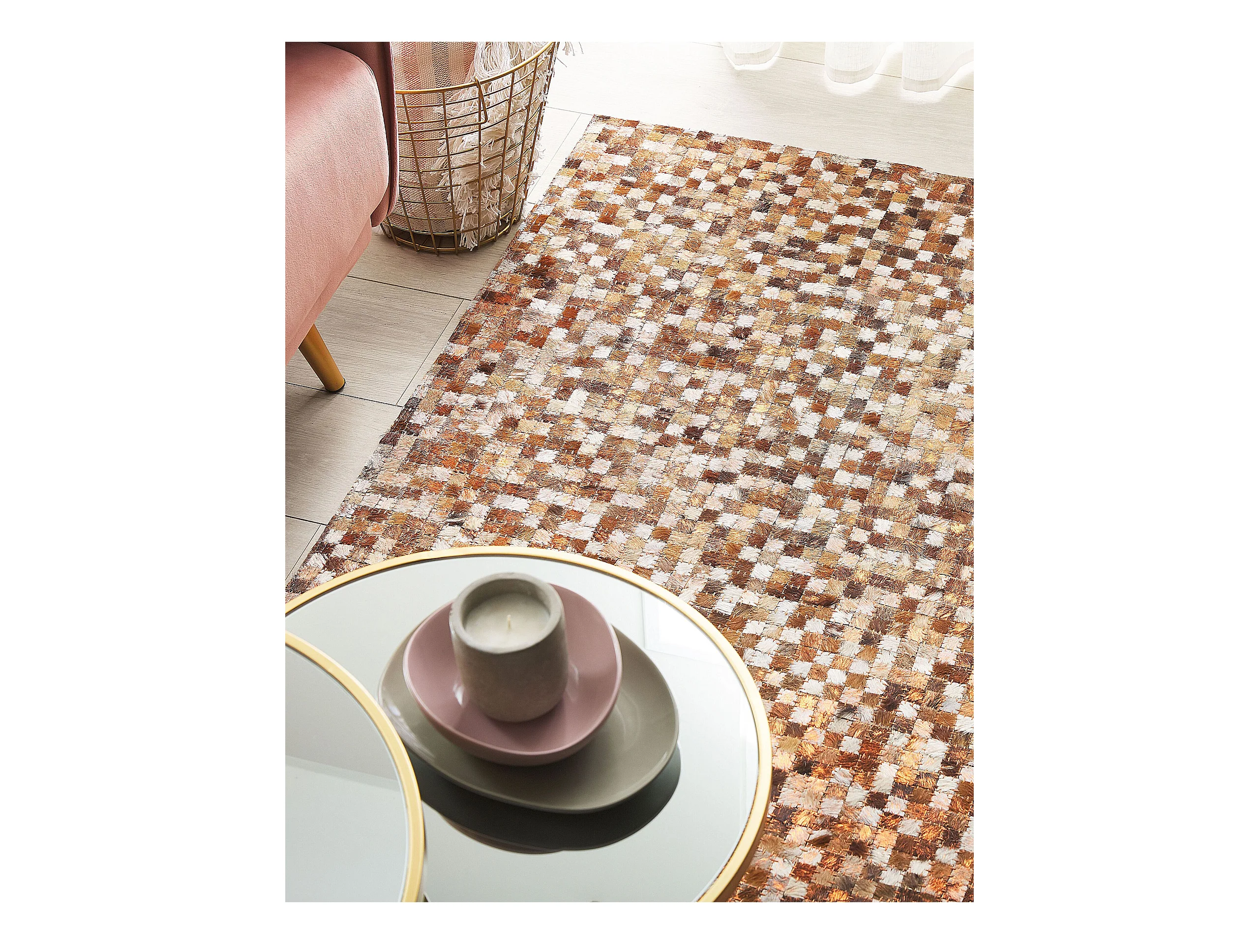 Teppich Leder braun/beige Mosaik 160 x 230 cm Torul