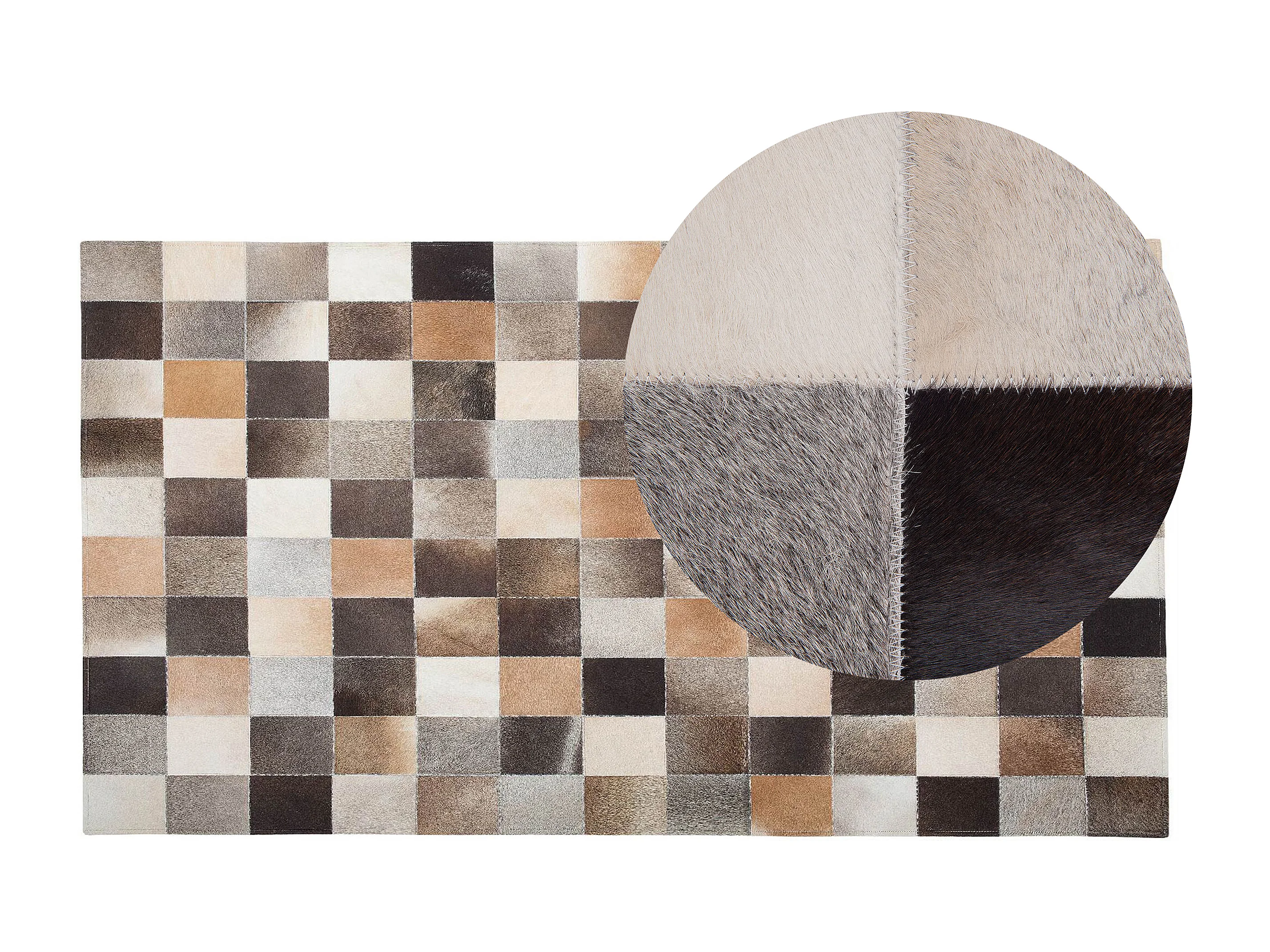 Lederteppich Kuhfell Patchwork braun beige grau rechteckig 200 x 300 cm Soke
