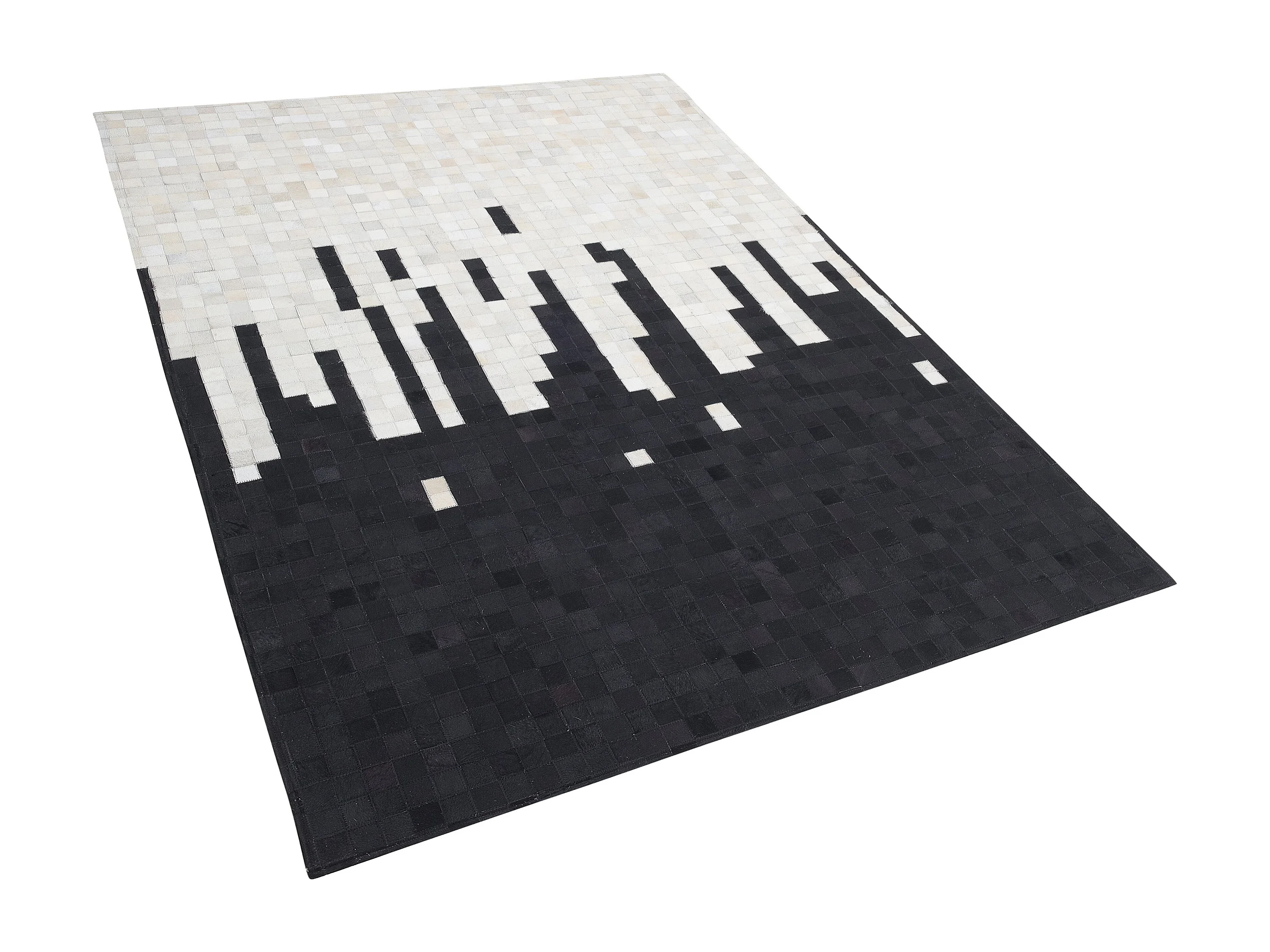 Moderner Teppich schwarz/weiß Echtleder 160 x 230 cm handgefertigt Bolu