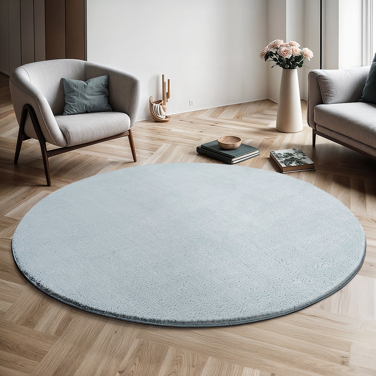 Teppich Kurzflor Waschbar Anti-Rutsch - Blau - 120 cm Rund - RELAX