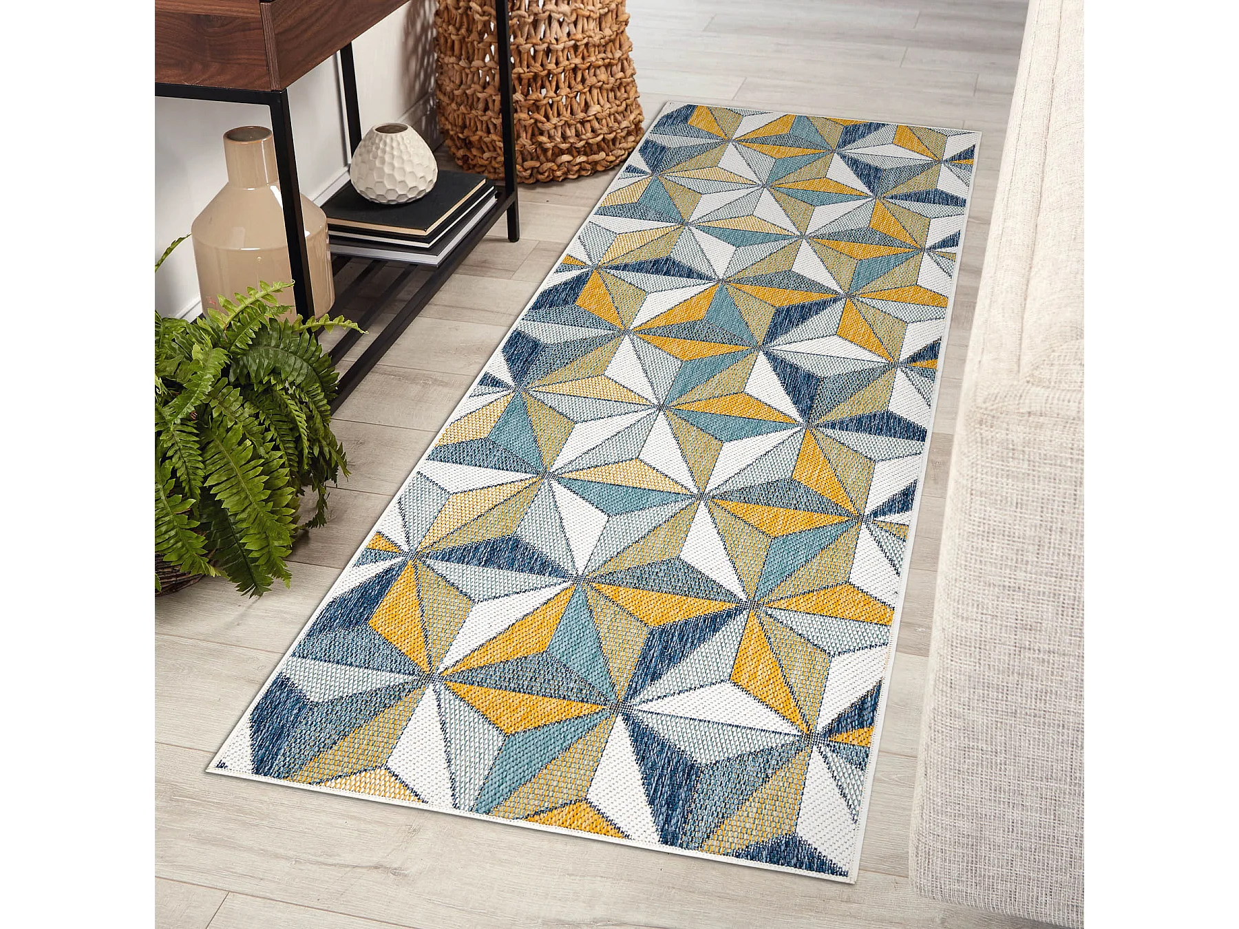 Teppich, Läufer SISAL COOPER Mosaik, Dreiecke 22222 ecru / dunkelblau 60x300 cm