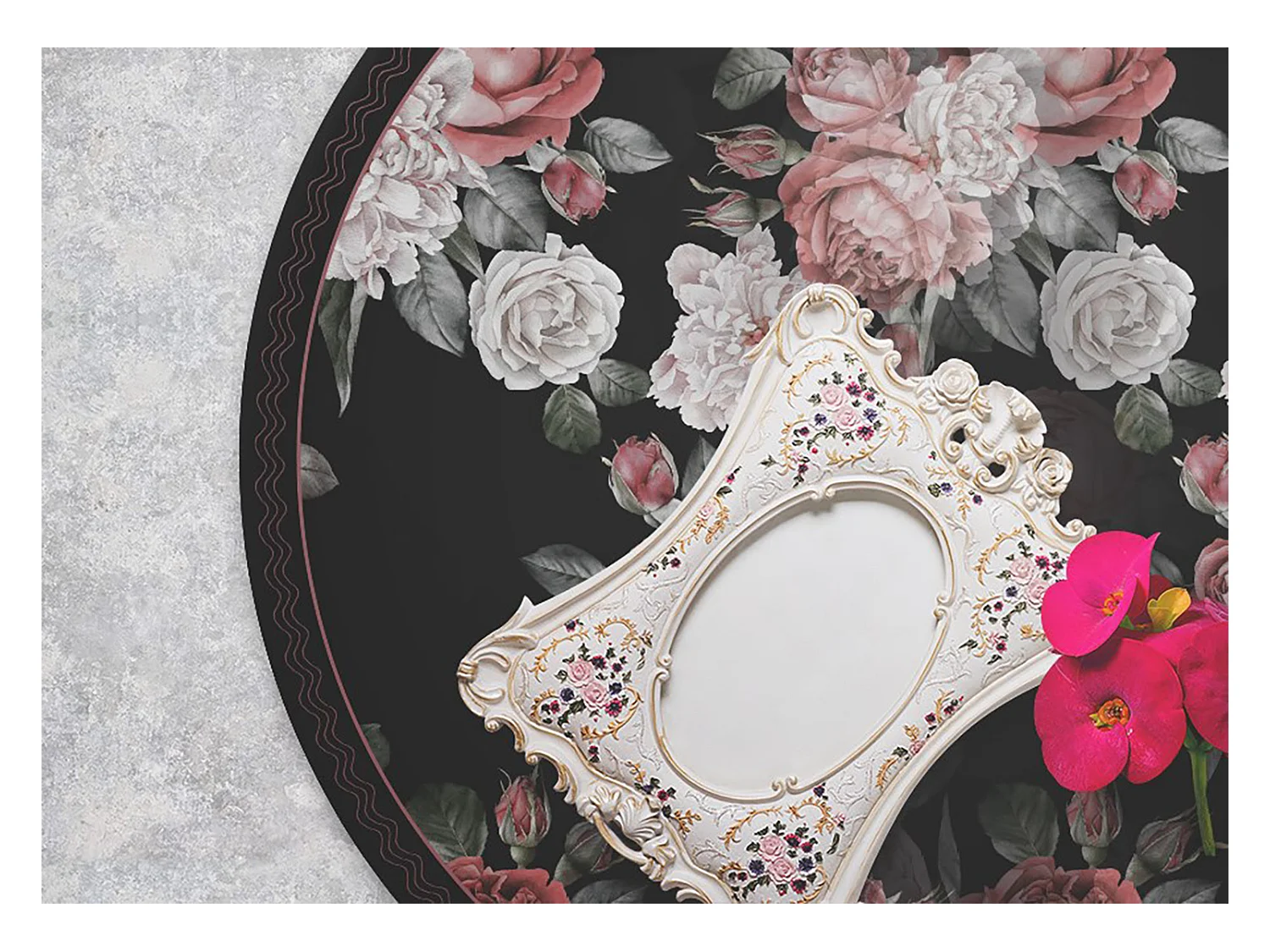 Teppich Vinyle 120cm Küchenmatte für das Wohnzimmer Rund PVC Dekorativ Wasserdicht - Rosen