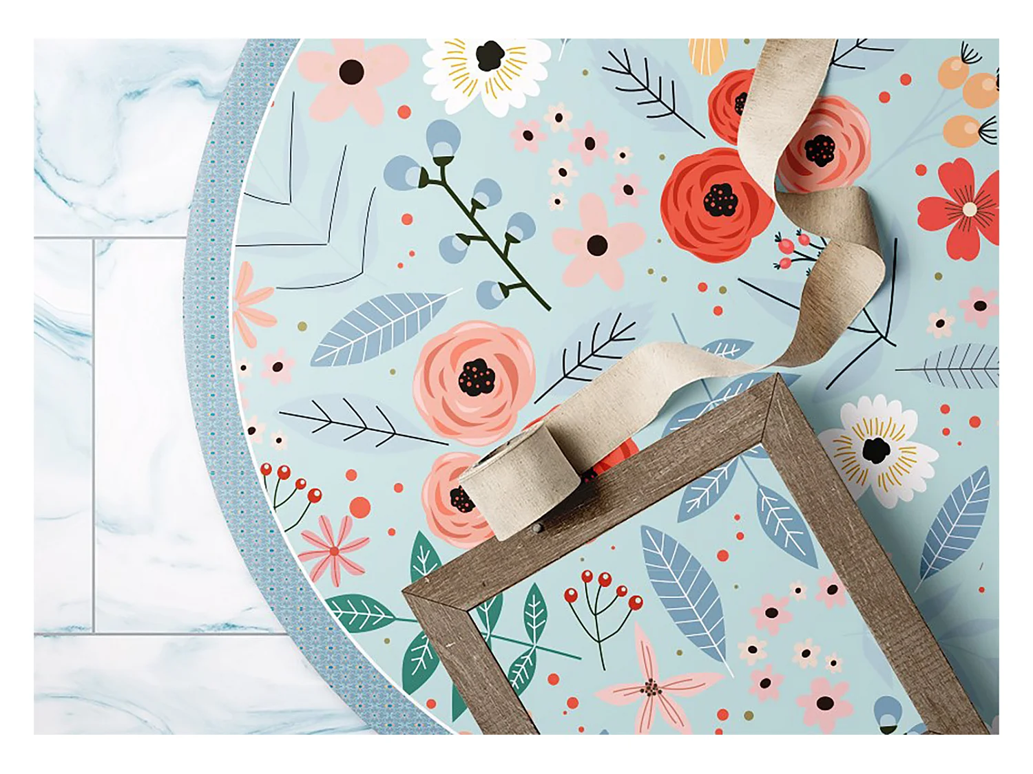 Teppich Vinyle 130cm Dekorativ Rund PVC für das Wohnzimmer Wasserdicht Küchenmatte - Wiesenblumen