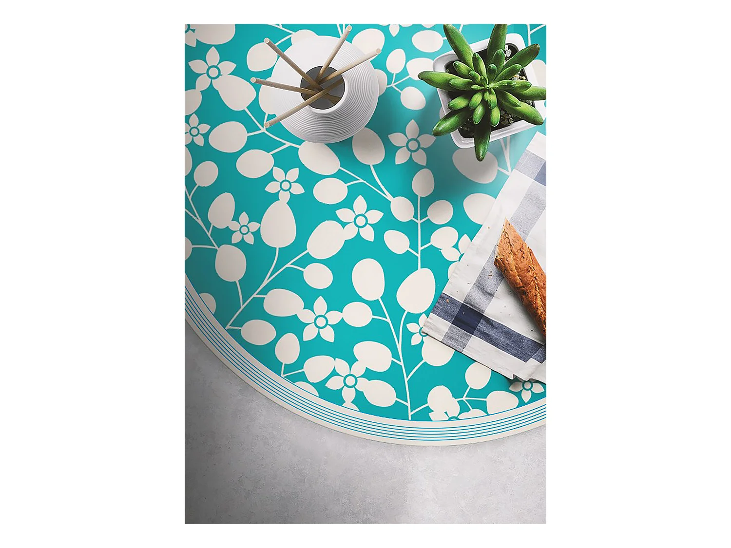 Teppich Vinyle 130cm für das Wohnzimmer Wasserdicht Küchenmatte Rund Dekorativ PVC - Blumentriebe