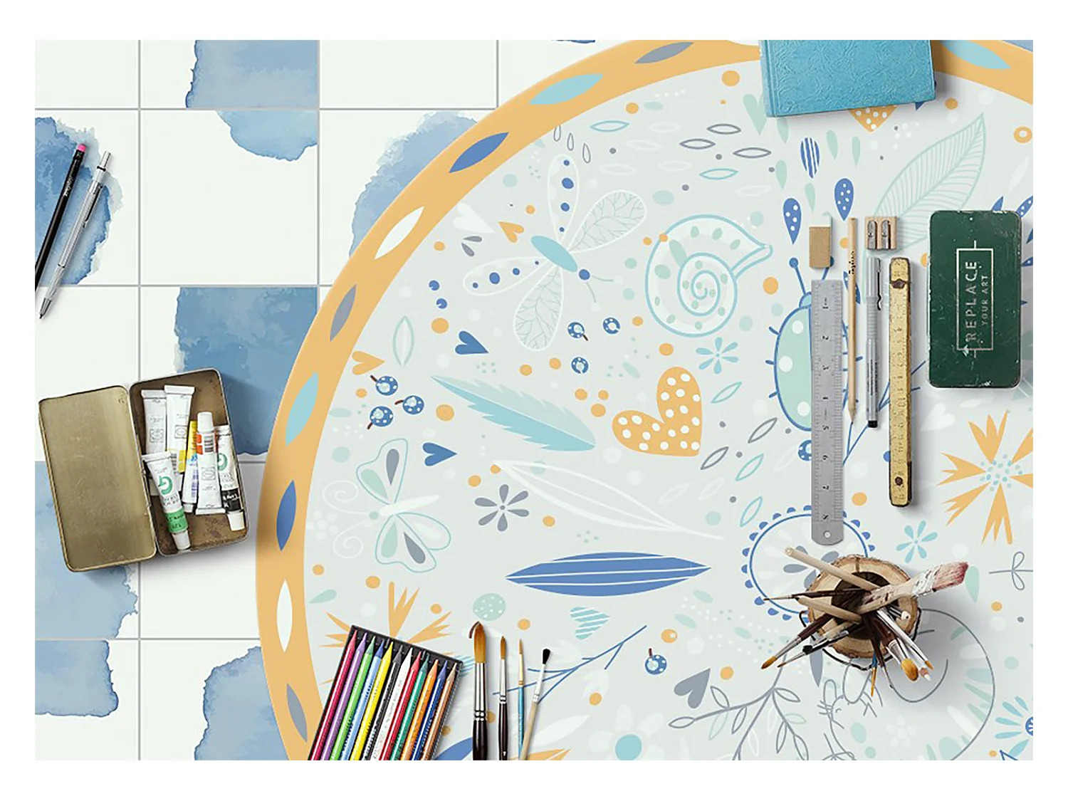 Teppich Vinyle 140cm für das Wohnzimmer Dekorativ Rund Wasserdicht Küchenmatte PVC - Wiesenmotive