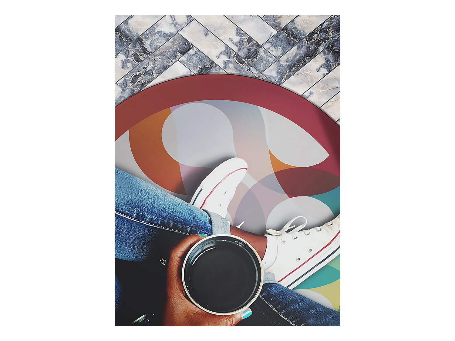 Teppich Vinyle 150cm für das Wohnzimmer Wasserdicht Küchenmatte Rund Dekorativ PVC - Abstrakte Formen