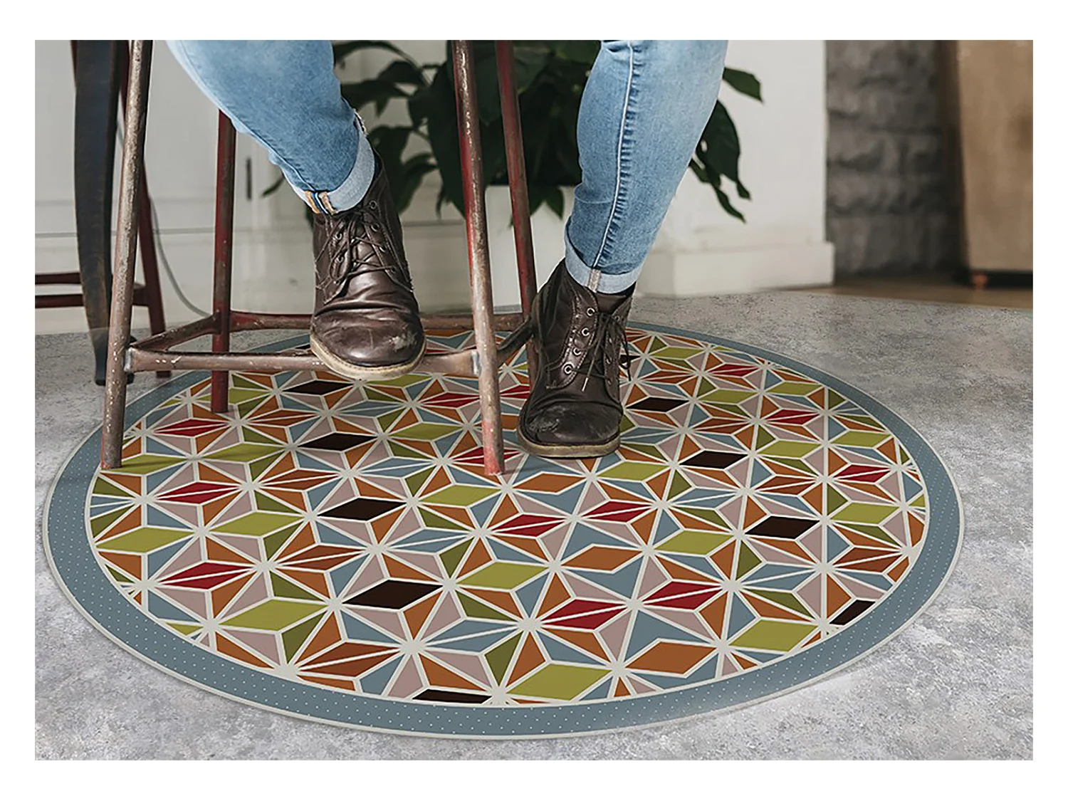 Teppich Vinyle 50cm Küchenmatte für das Wohnzimmer PVC Rund Dekorativ Wasserdicht - Abstraktes Kaleidoskop