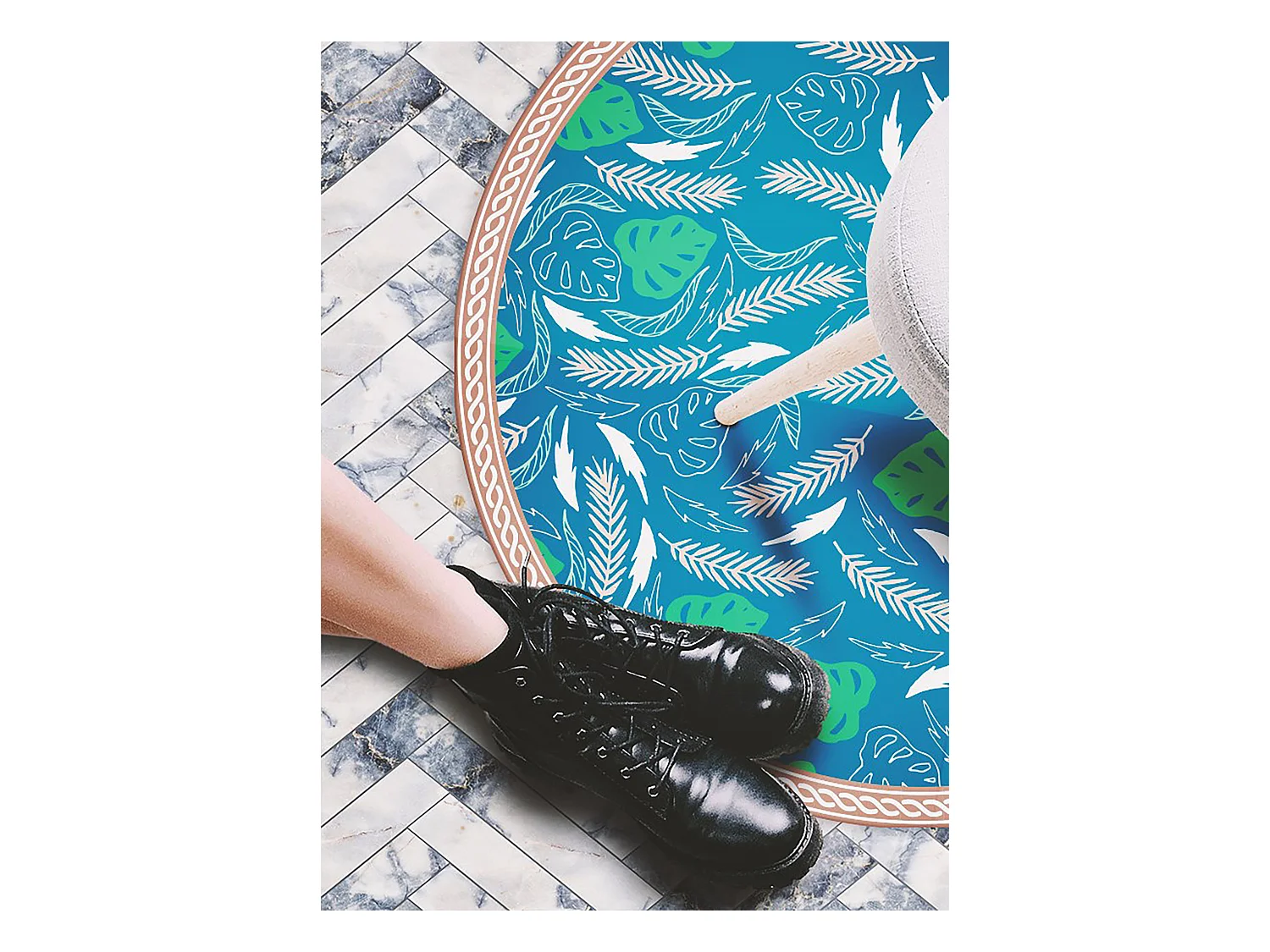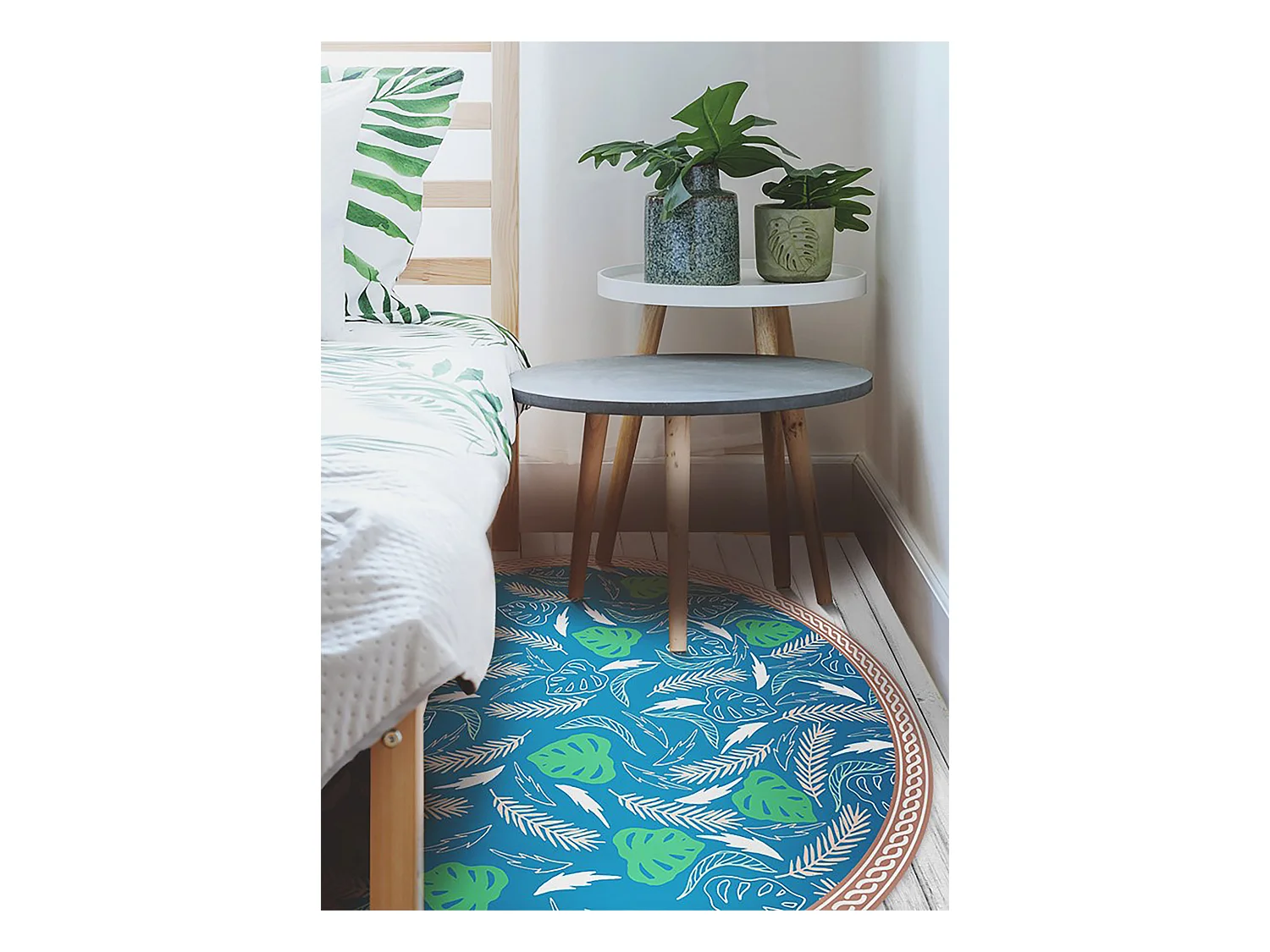Teppich Vinyle 60cm Küchenmatte für das Wohnzimmer Rund PVC Dekorativ Wasserdicht - Hawaiianische Blätter