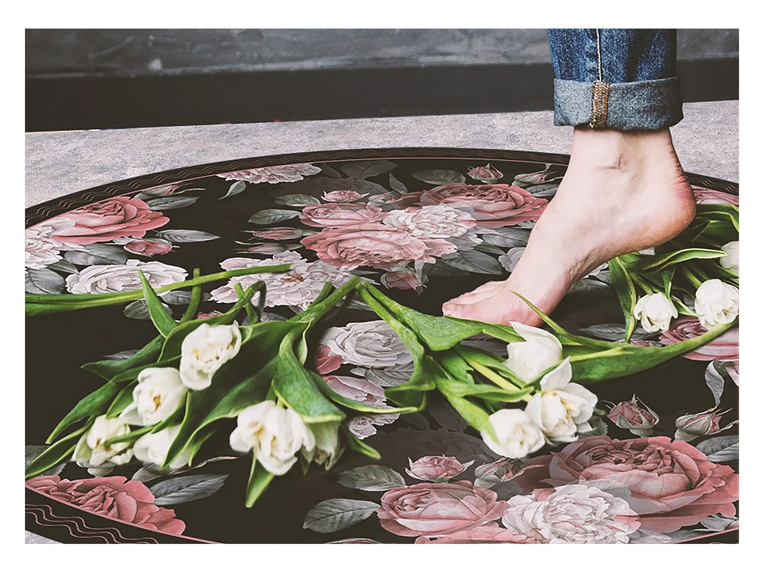 Teppich Vinyle 70cm Küchenmatte für das Wohnzimmer Rund PVC Dekorativ Wasserdicht - Rosen