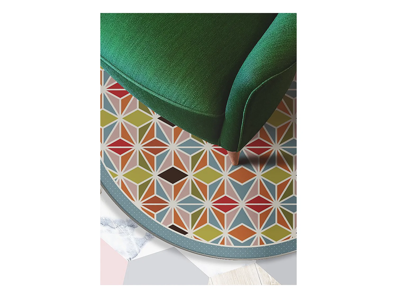 Teppich Vinyle 80cm Küchenmatte für das Wohnzimmer PVC Rund Dekorativ Wasserdicht - Abstraktes Kaleidoskop
