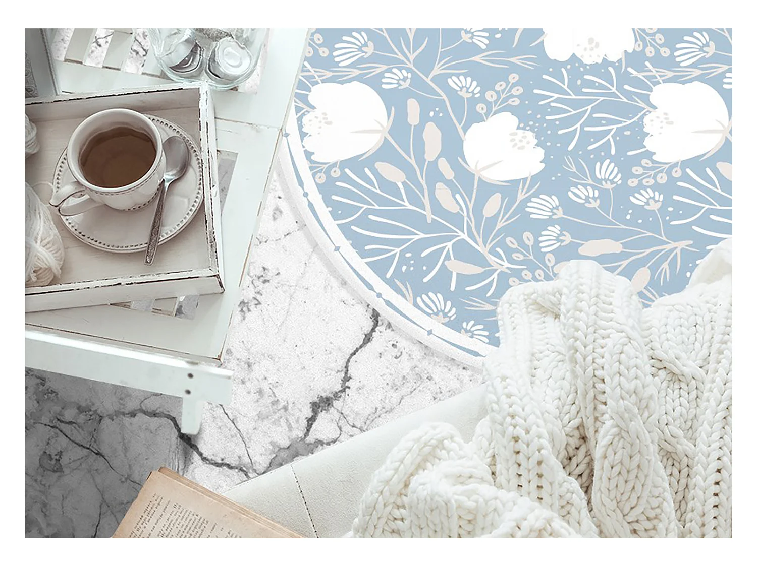 Teppich Vinyle 80cm Küchenmatte für das Wohnzimmer PVC Rund Dekorativ Wasserdicht - Triebe und Knospen