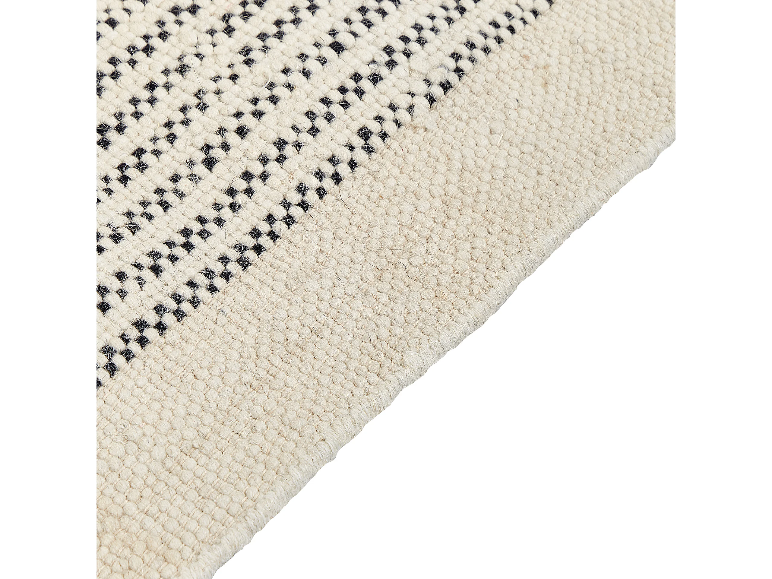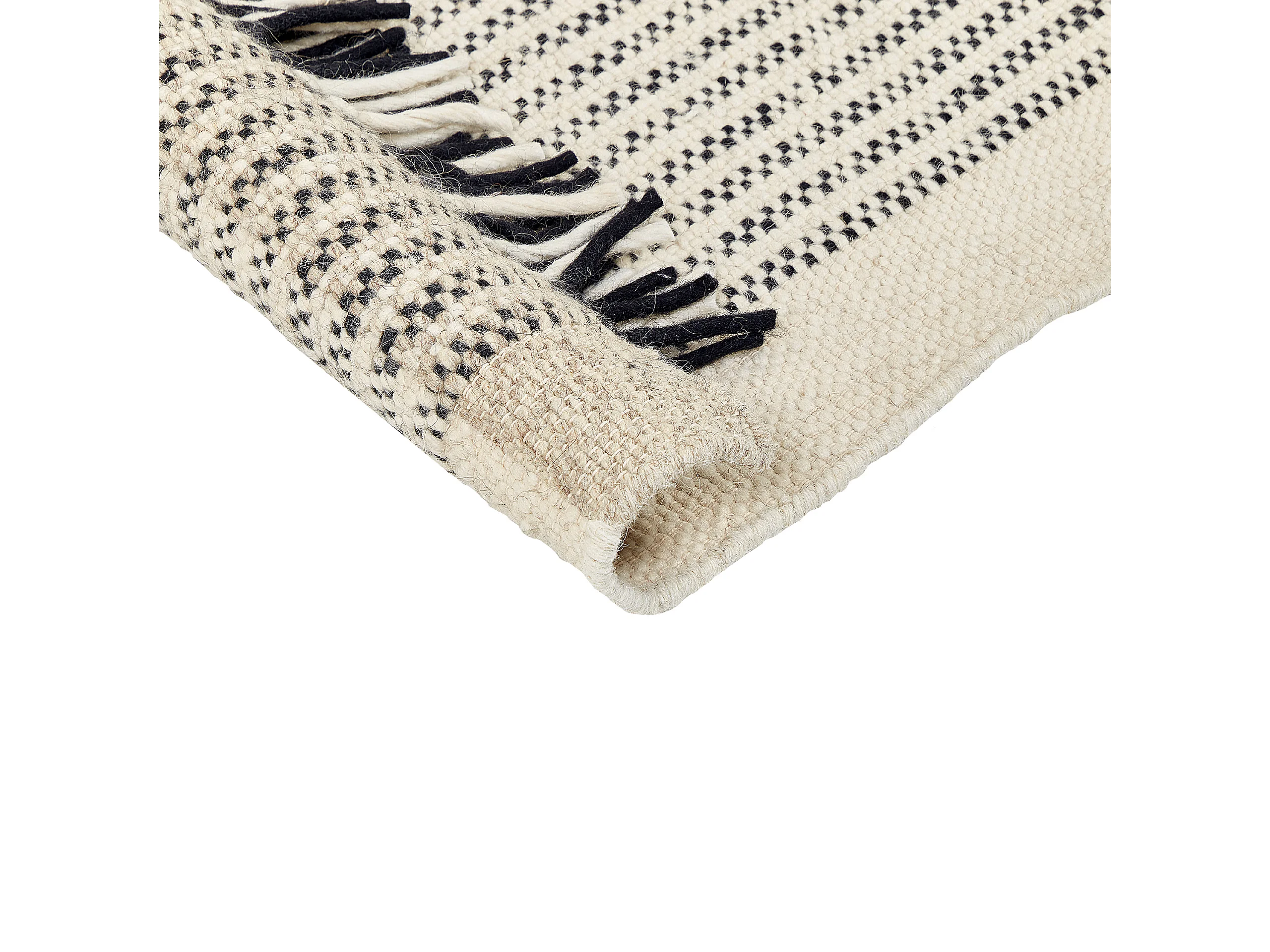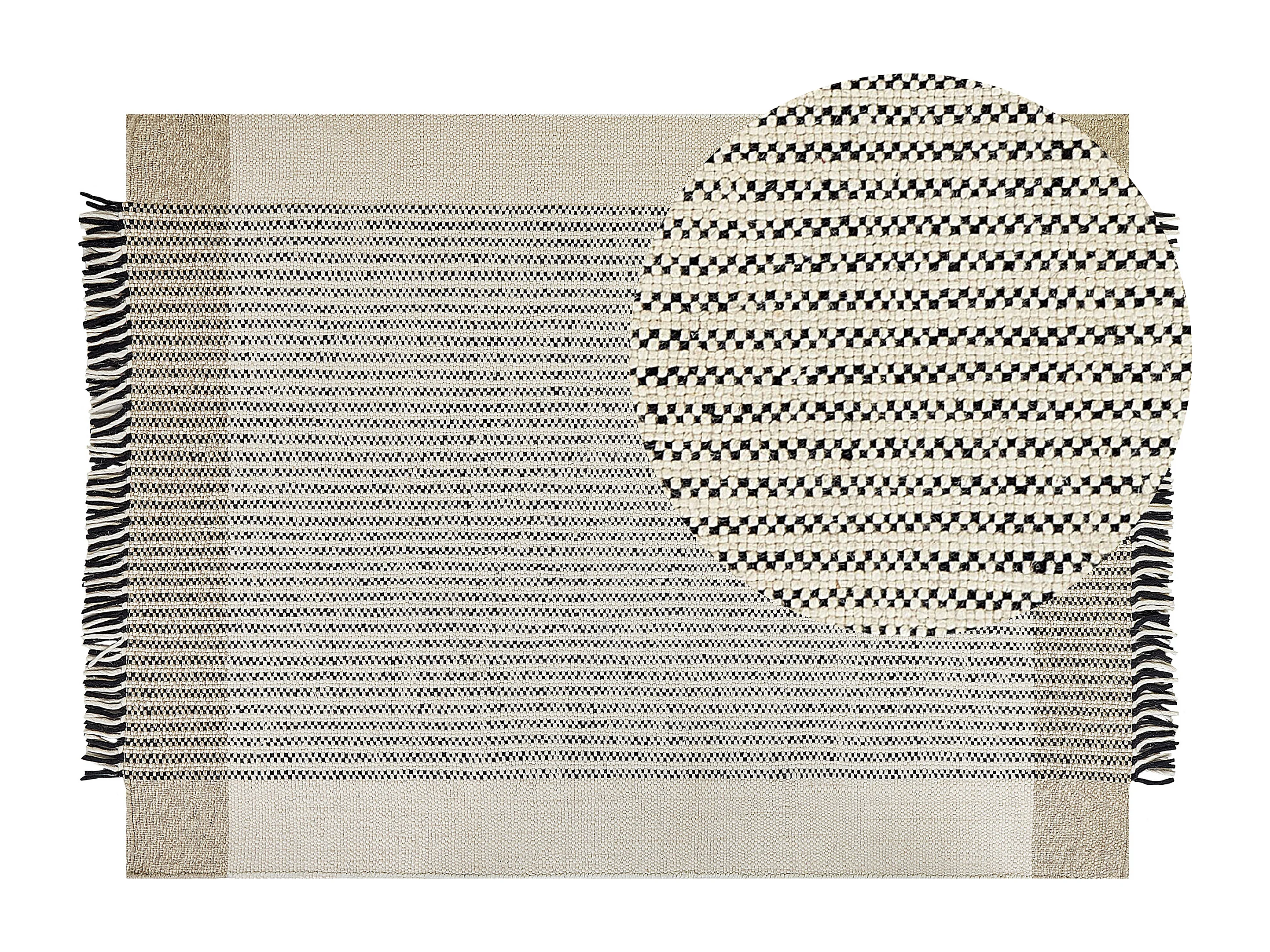 Teppich Wolle / Baumwolle beige 160 x 230 cm Fransen schwarz handgewebt Divarli