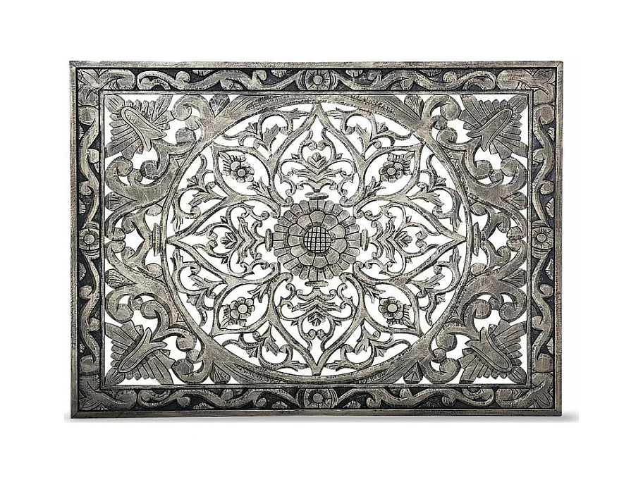 Geschnitztes Holz-Kopfteil "Simana" 160cm Bronze Blumenornamente