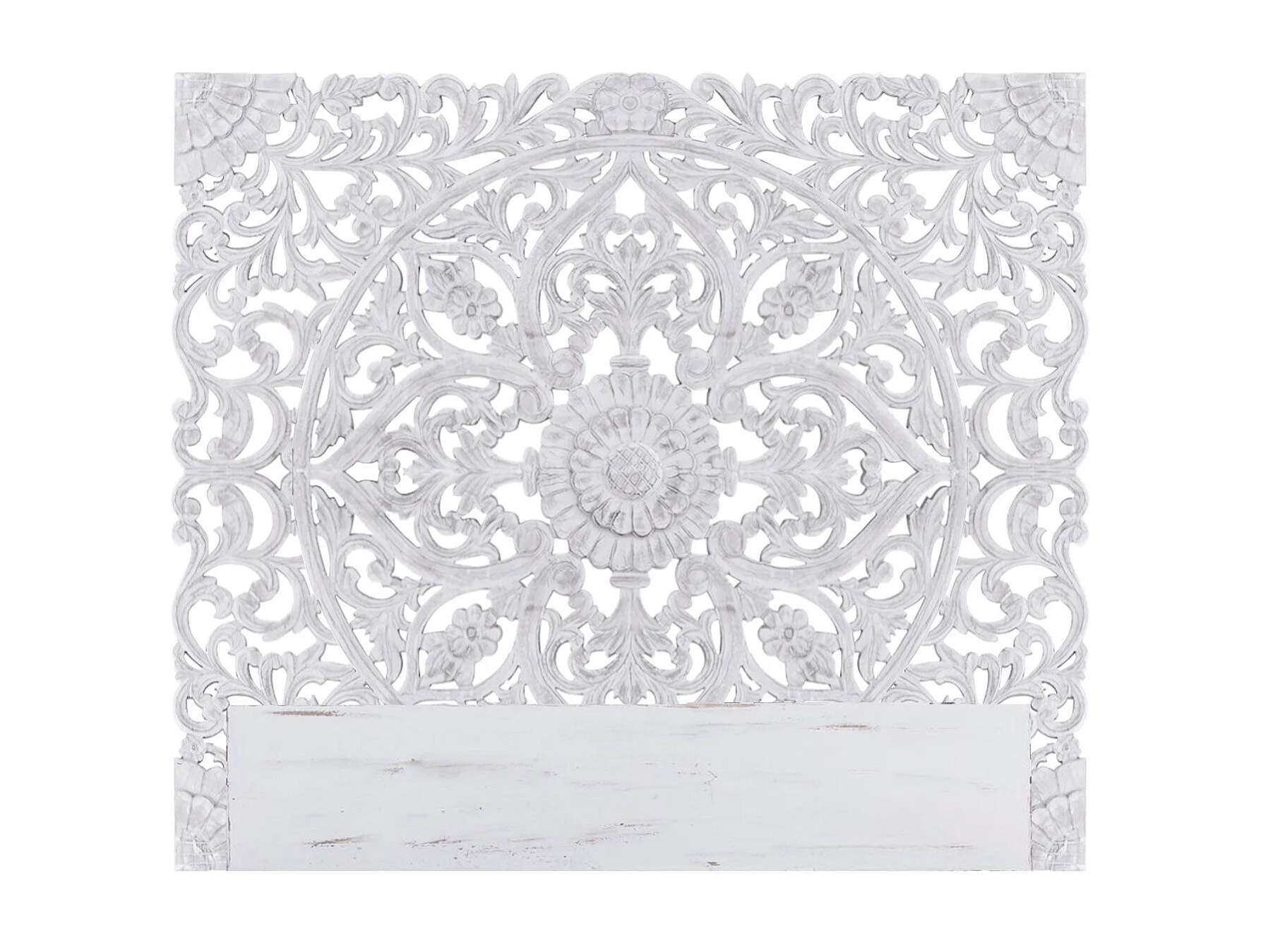 Kopfteil aus Weißem Holz "Grisy" 160cm Provenzalischer Stil Blumendesign - Ohne Aufbewahrung oder LEDs