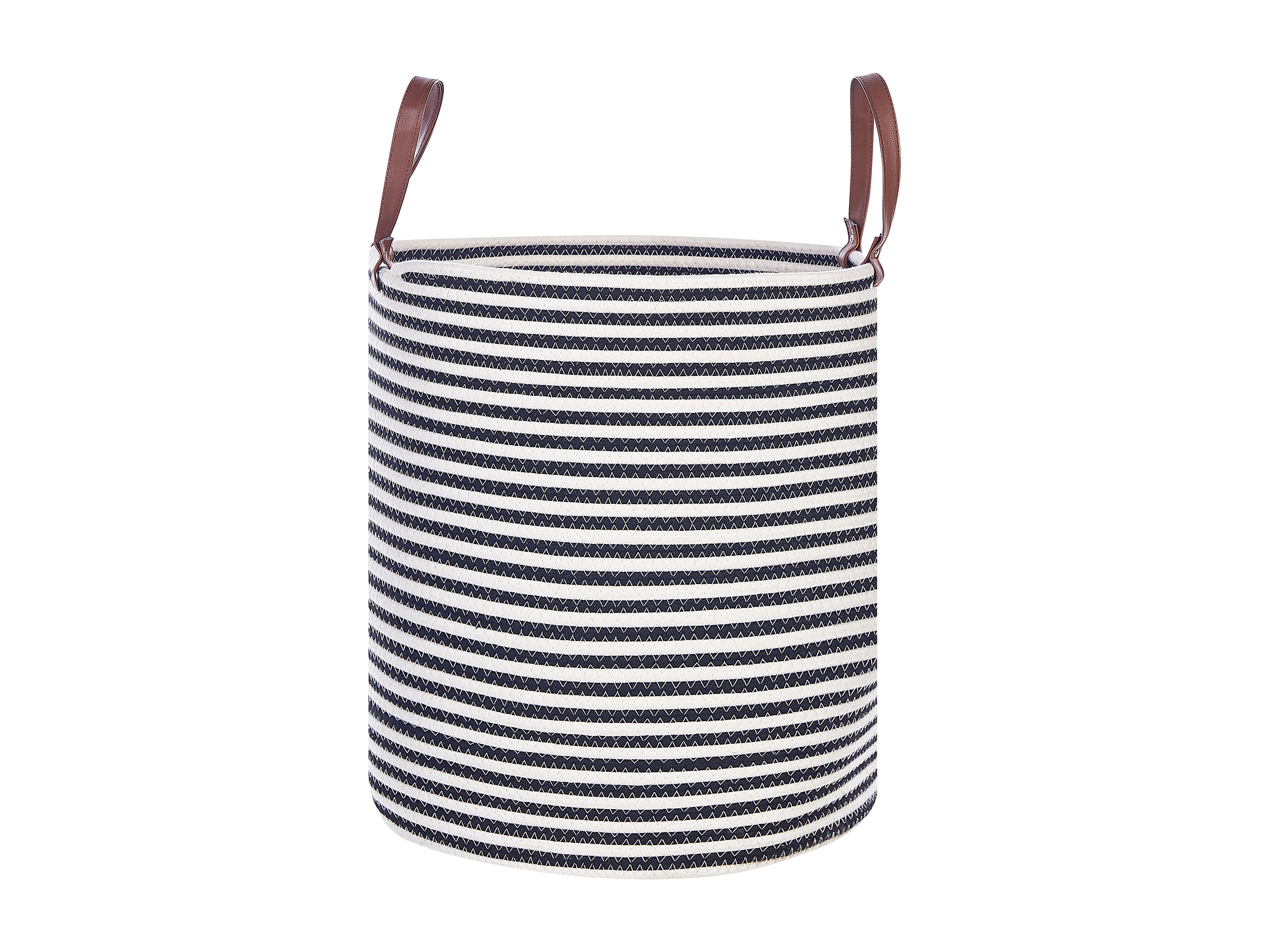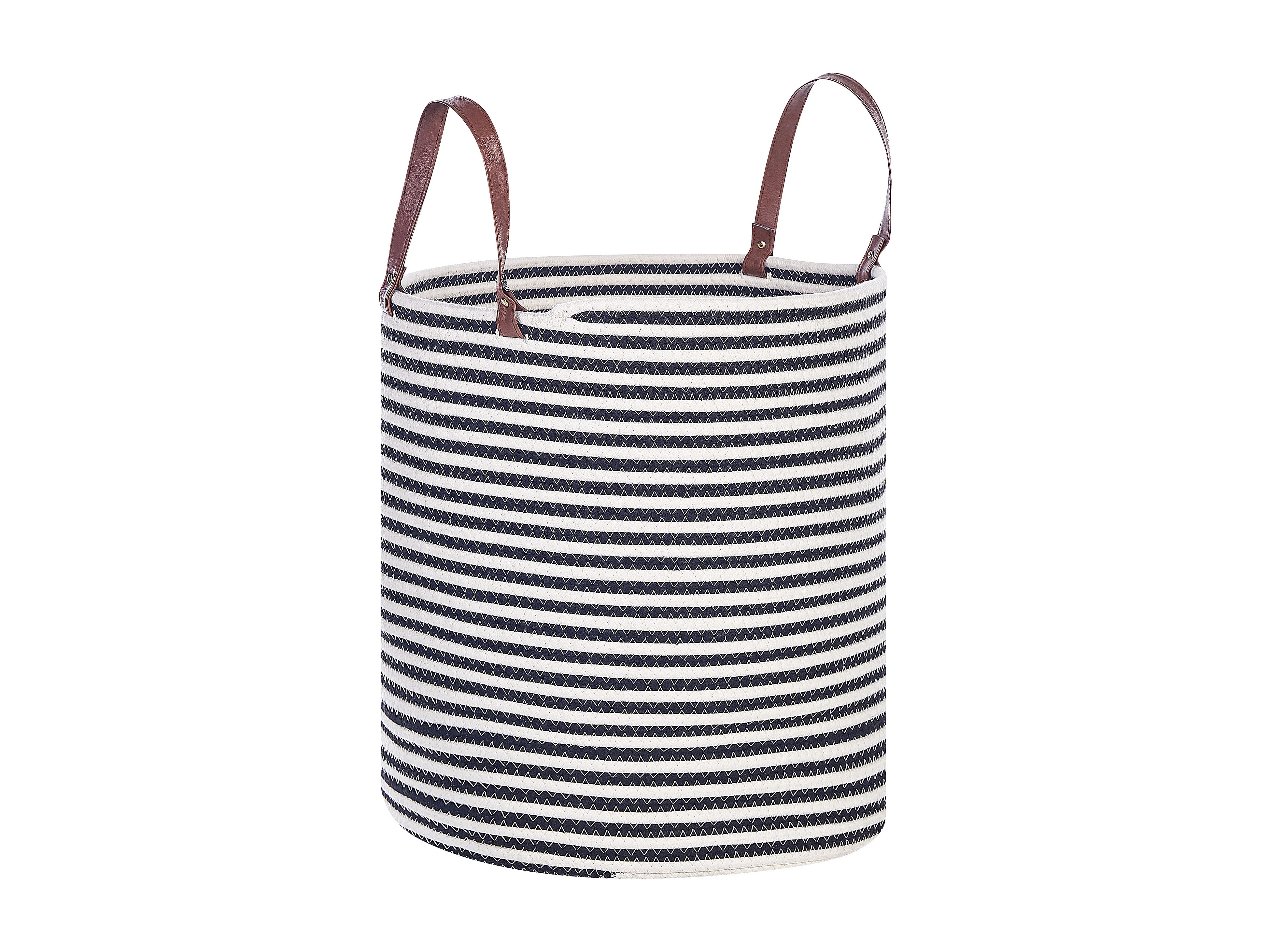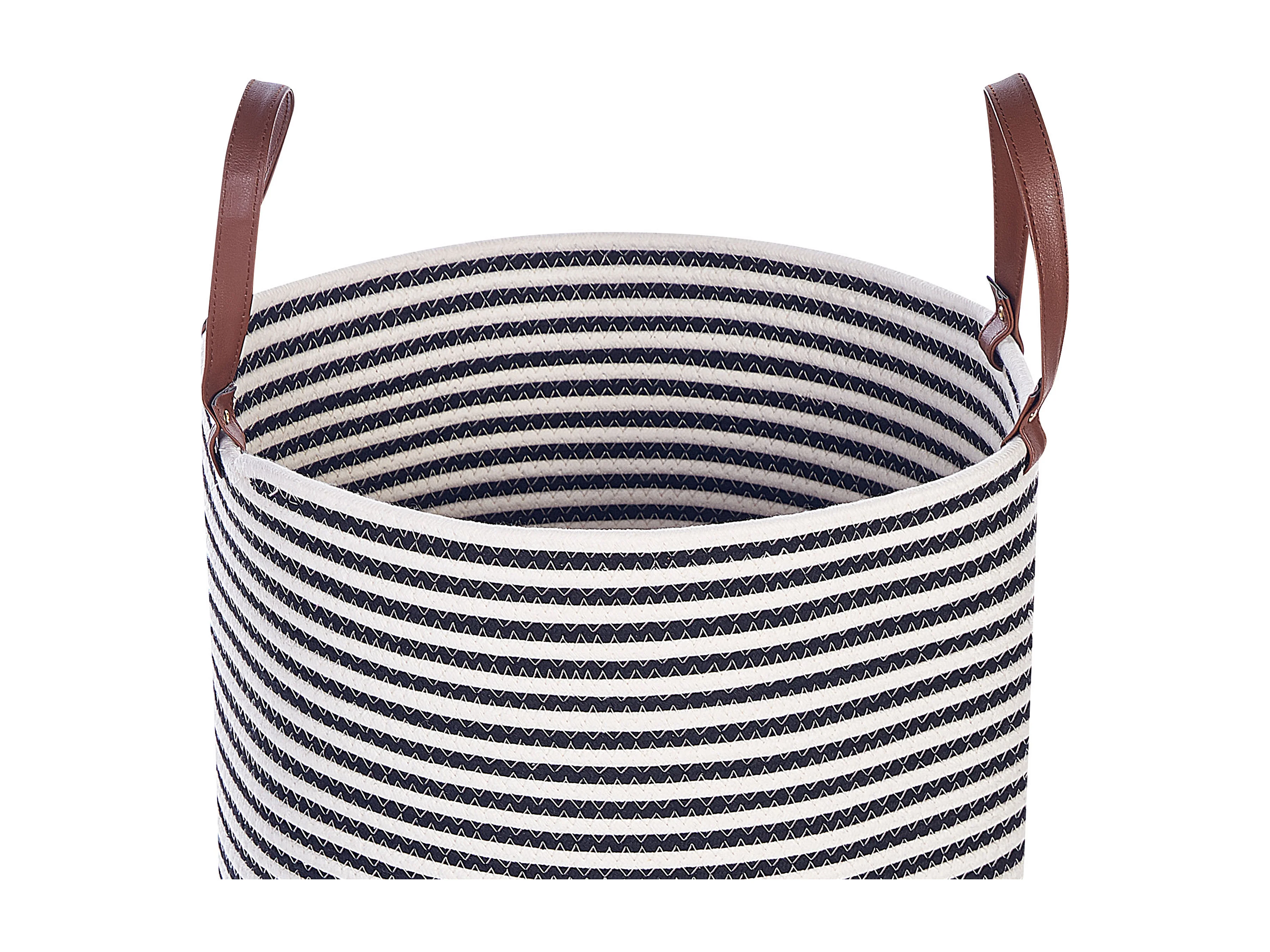 Korb Baumwolle weiß / schwarz handgemacht rund mit Griffen Aufbewahrung Ichka