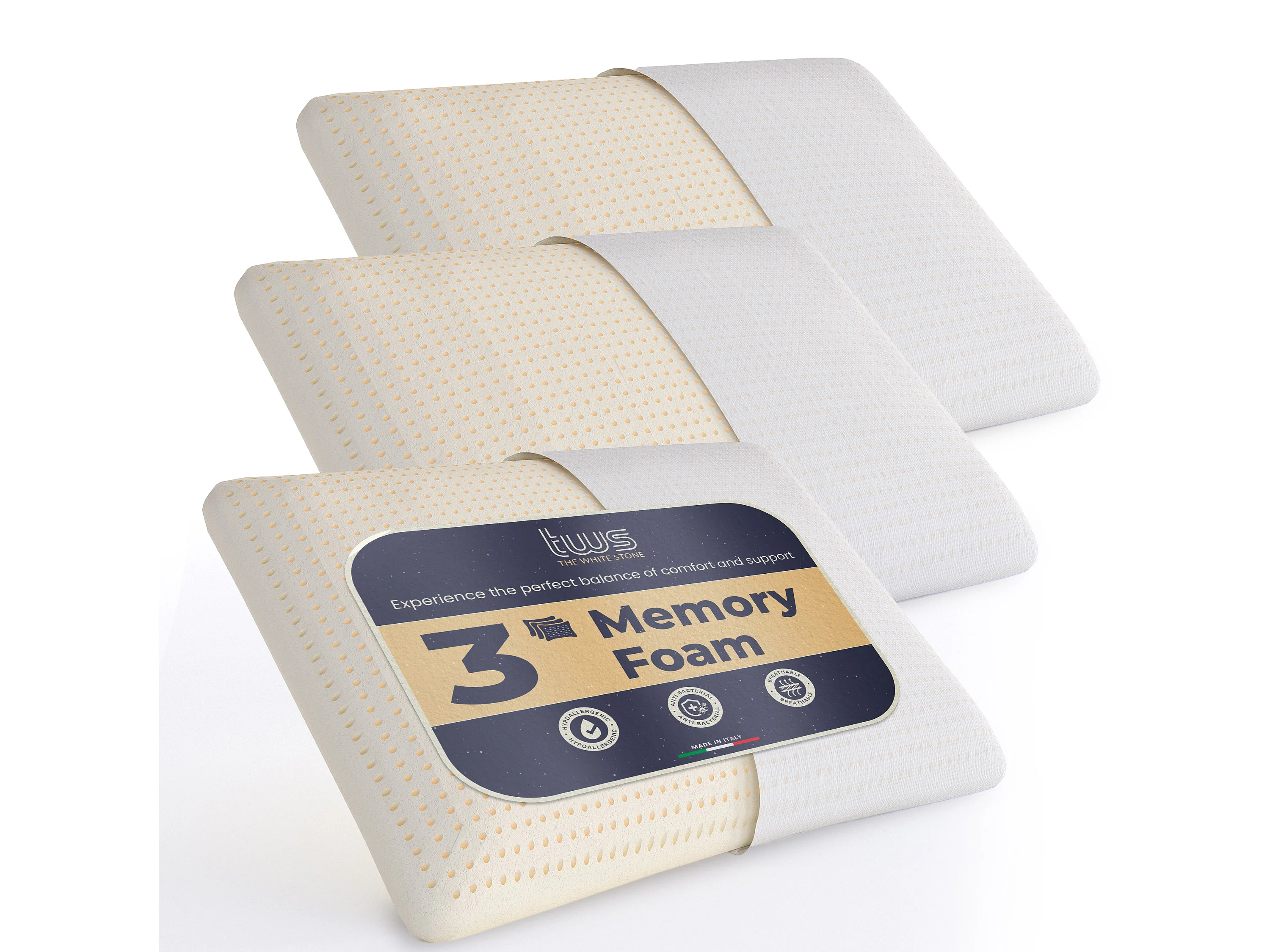 The White Stone 3er-Set Memory Foam Kissen, 40 x 70 cm, Höhe 11 cm, hypoallergen, ergonomisches und atmungsaktives Nackenkissen, Anti-Choking und Kühlfunktion