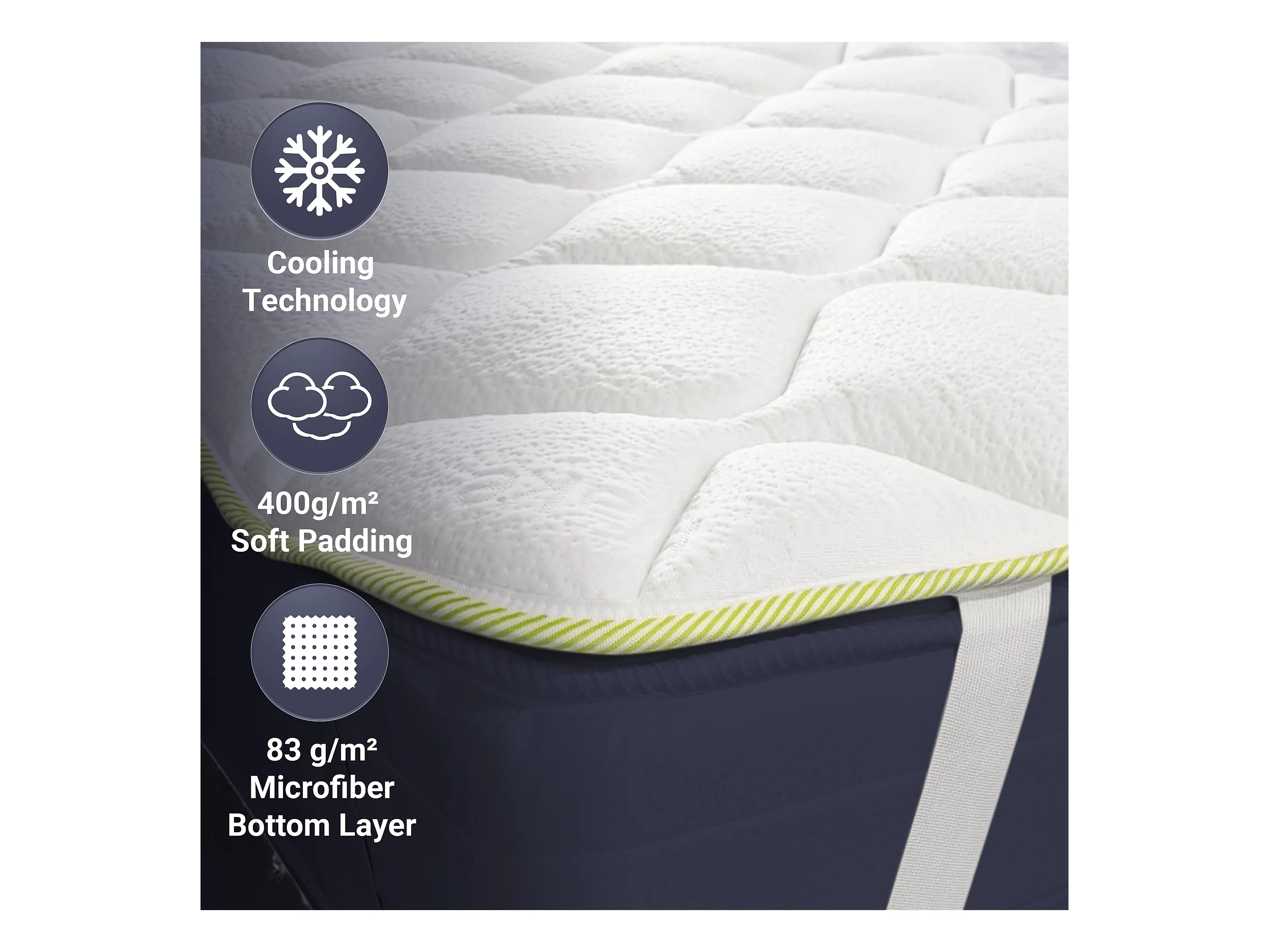 The White Stone Topper Erfrischend Einzel mit Elastiken | Matratzenkorrektor 200 x 200 | Cooler-Technologie und orthopädische Eigenschaften | Höhe 4 cm
