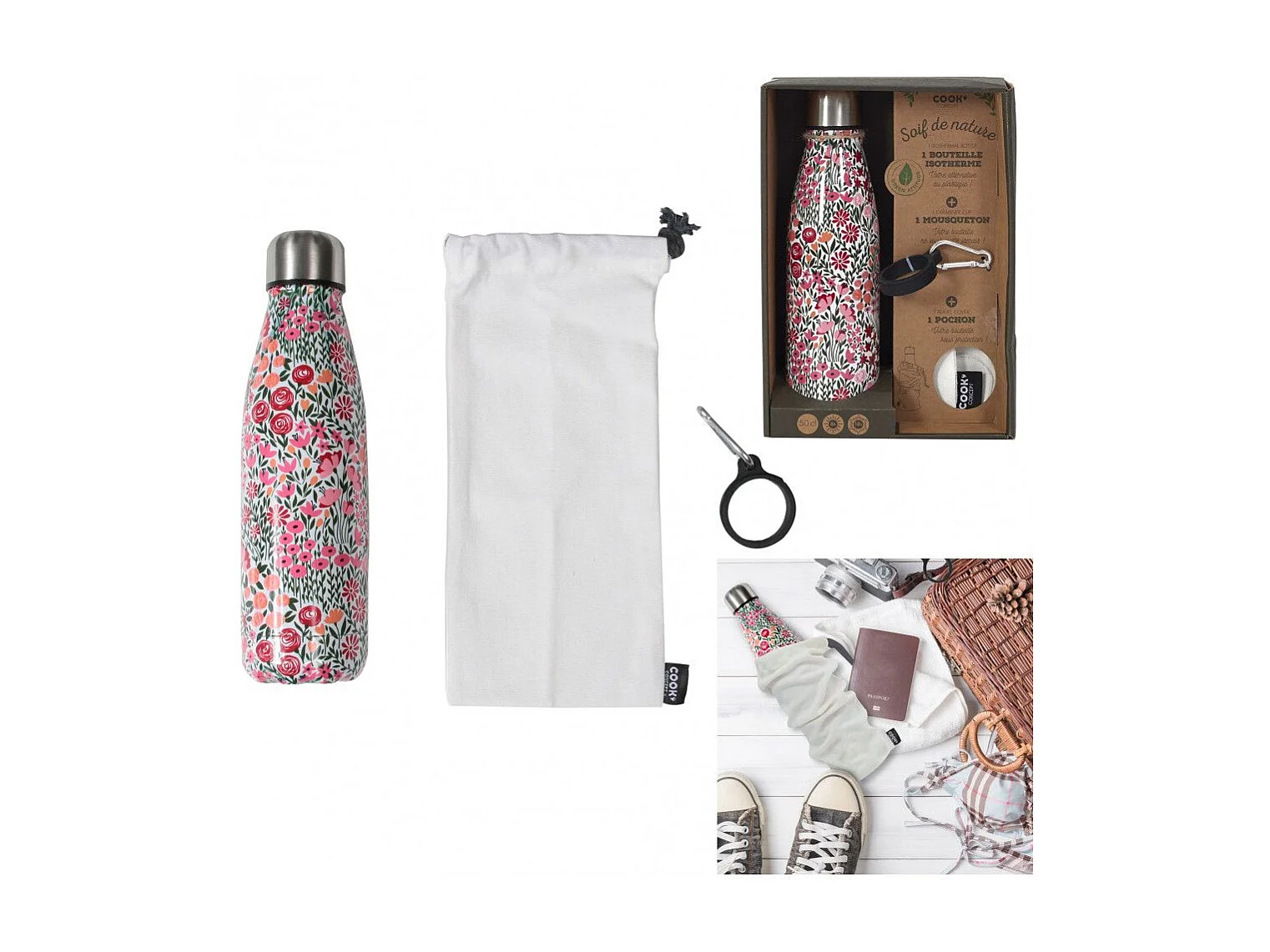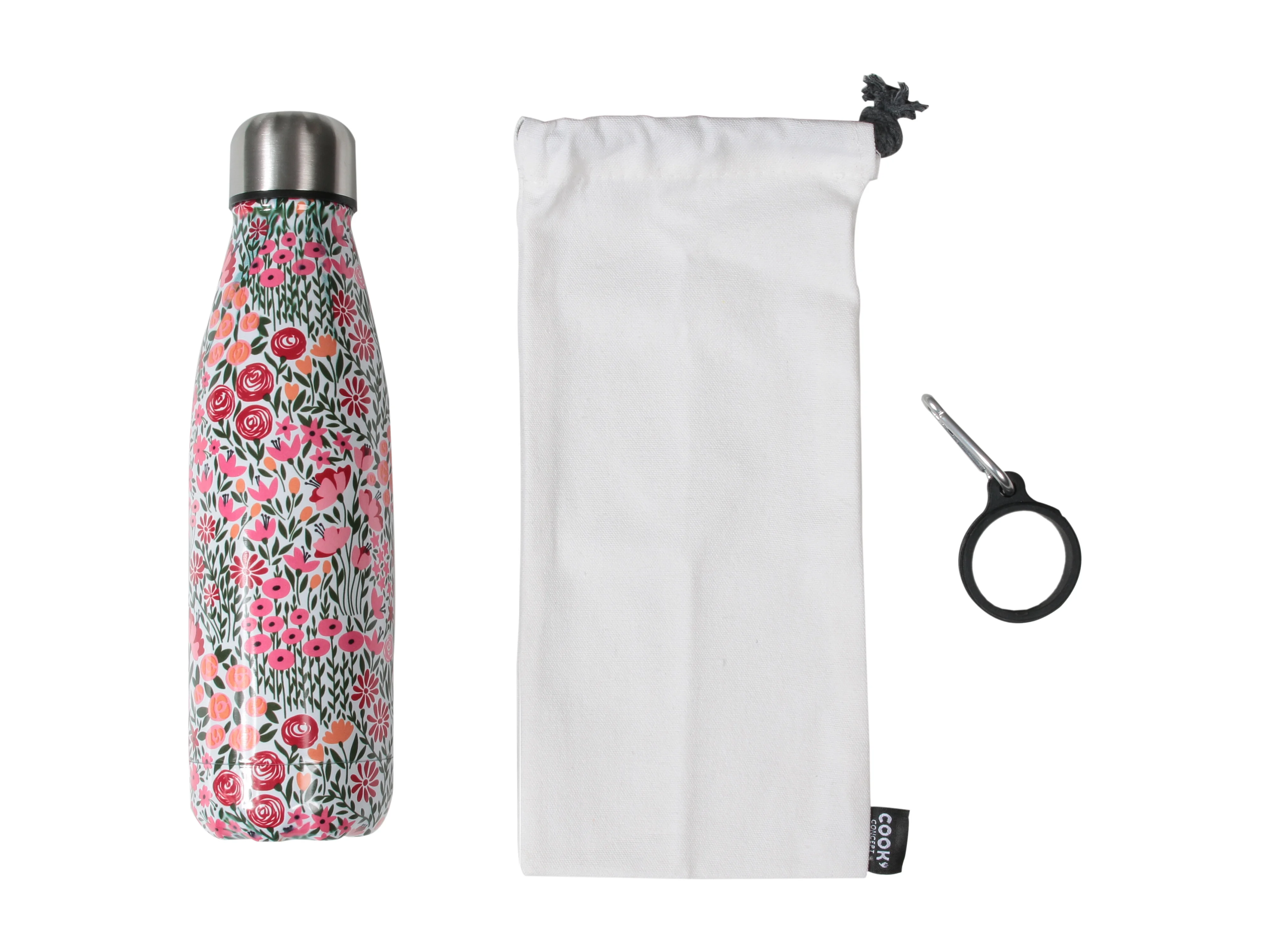 Thermoflasche 50 Zentiliter mit Blumen Motiven und Karabinerhaken