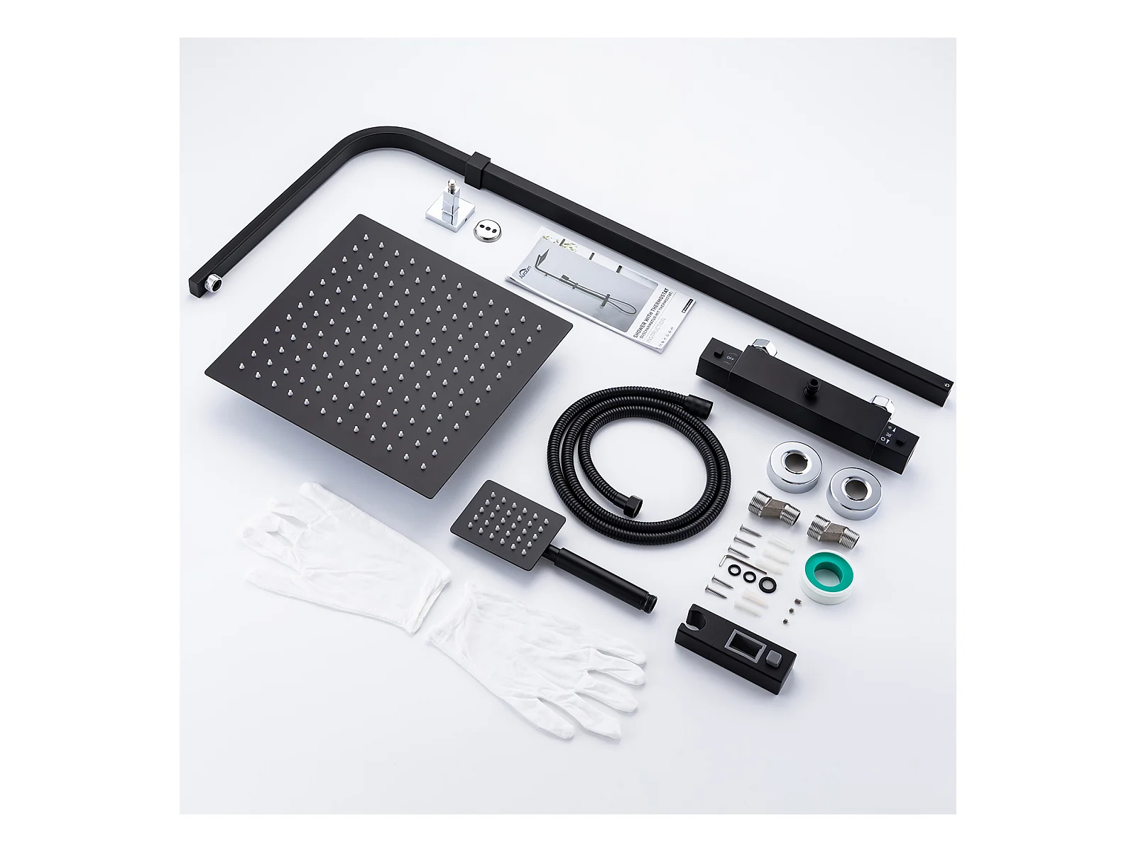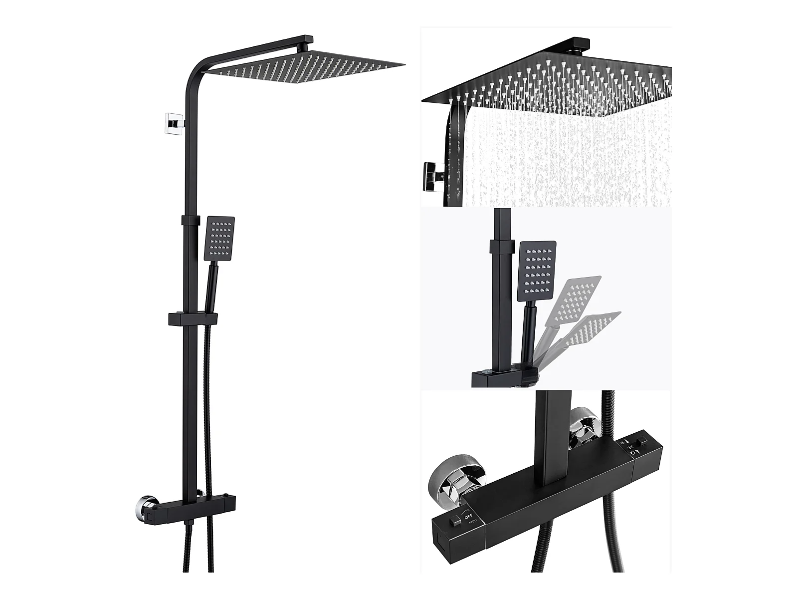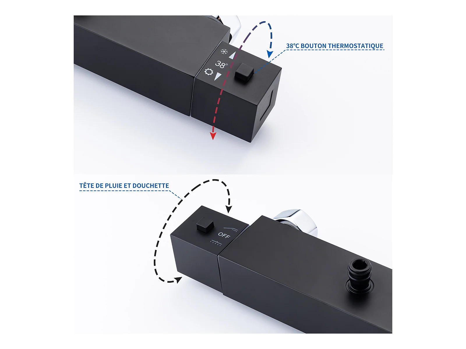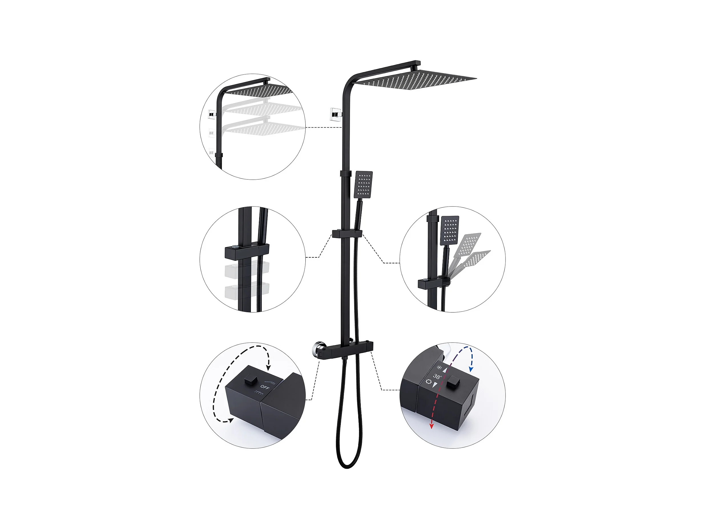 Thermostat-Duschsäule, 38 °C, schwarze Duschsäule mit einstellbarem Thermostat-Duschsystem, Mischerhöhe 90–116 cm, Badezimmer