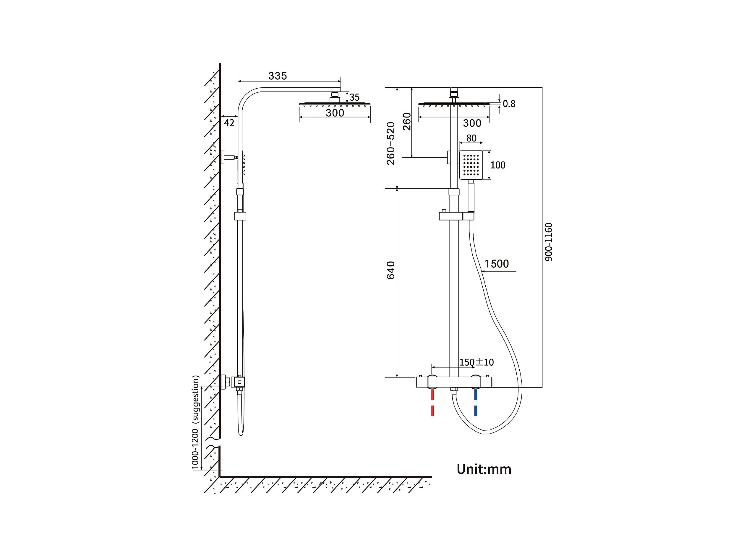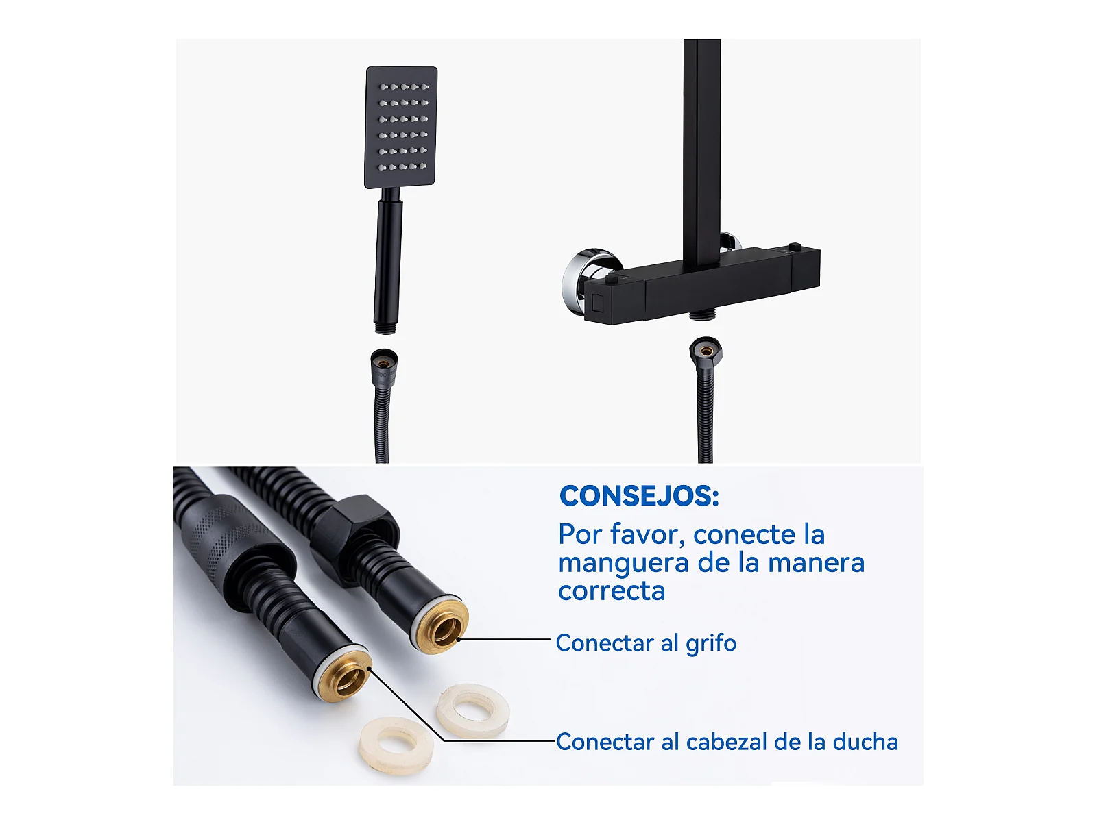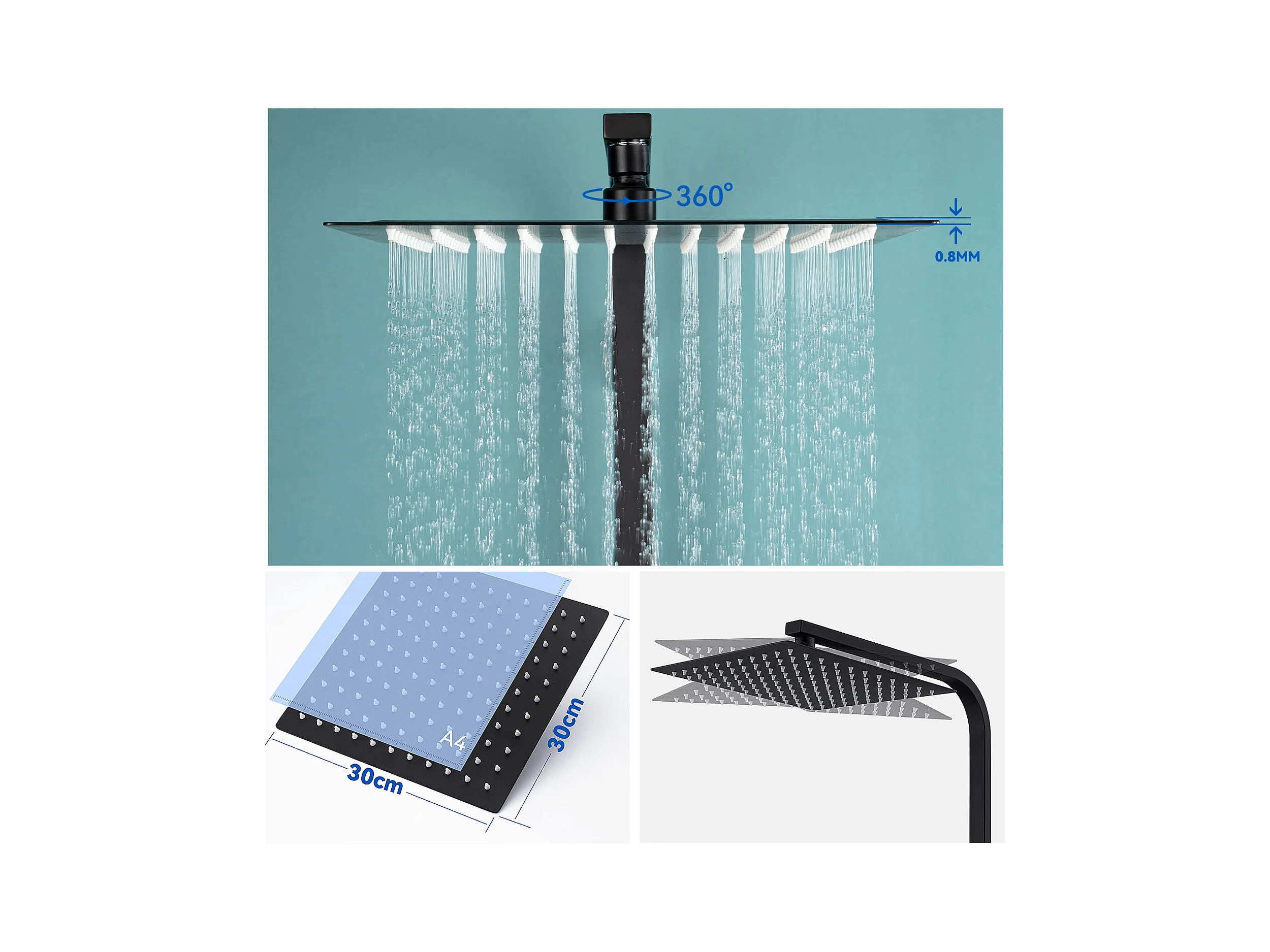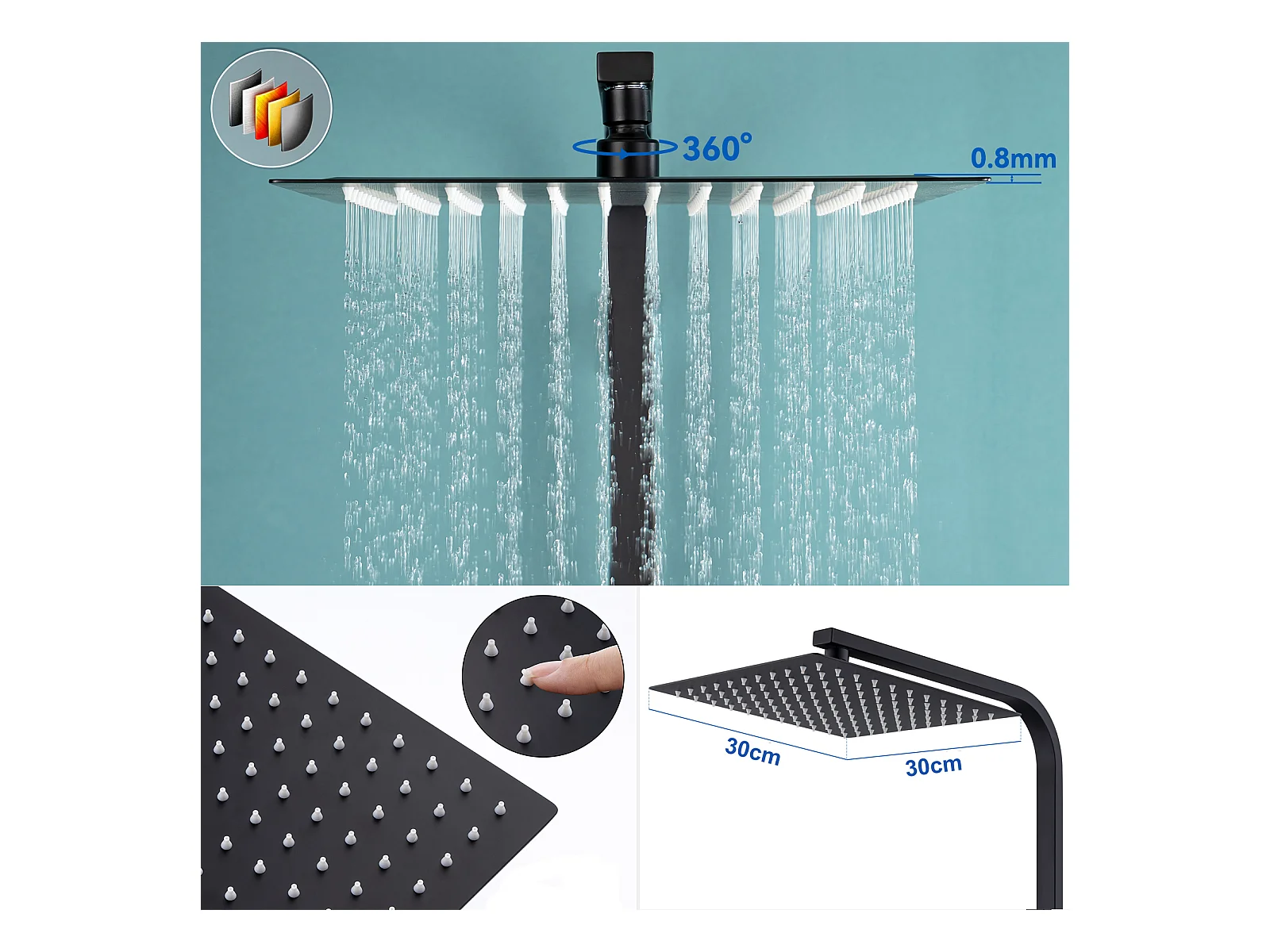 Thermostat-Duschsäule, 38 °C, schwarze Duschsäule mit einstellbarem Thermostat-Duschsystem, Mischerhöhe 90–116 cm, Badezimmer