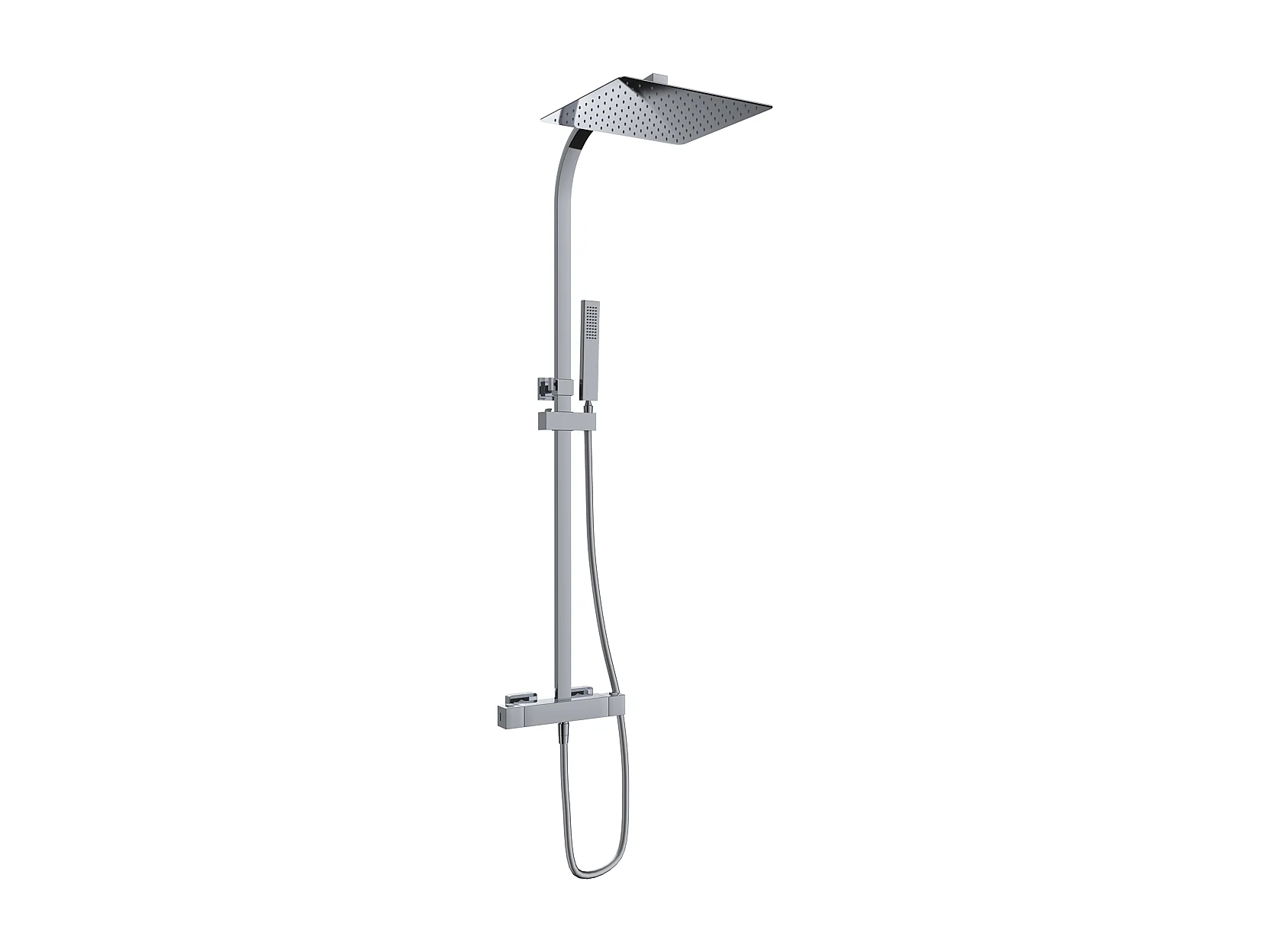Thermostat-Duschsäule CUBO Glänzendes Chrom mit Thermostatmischer und 30 cm Duschkopf