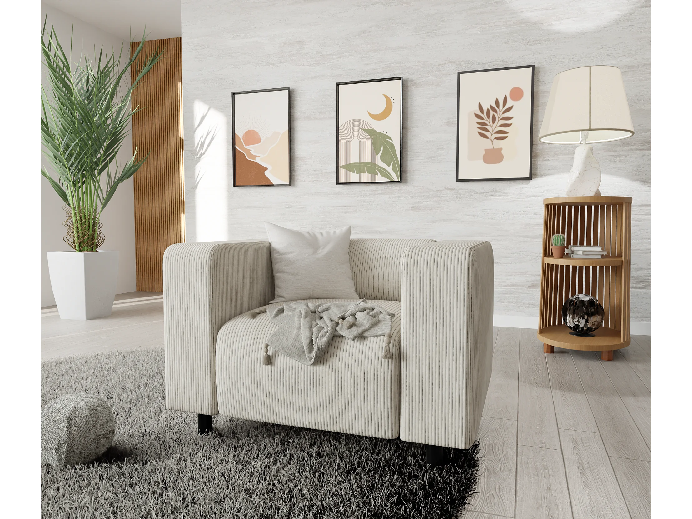 Thora - Modernes Sessel aus Beige Cord-Stoff mit bequemem Sitz