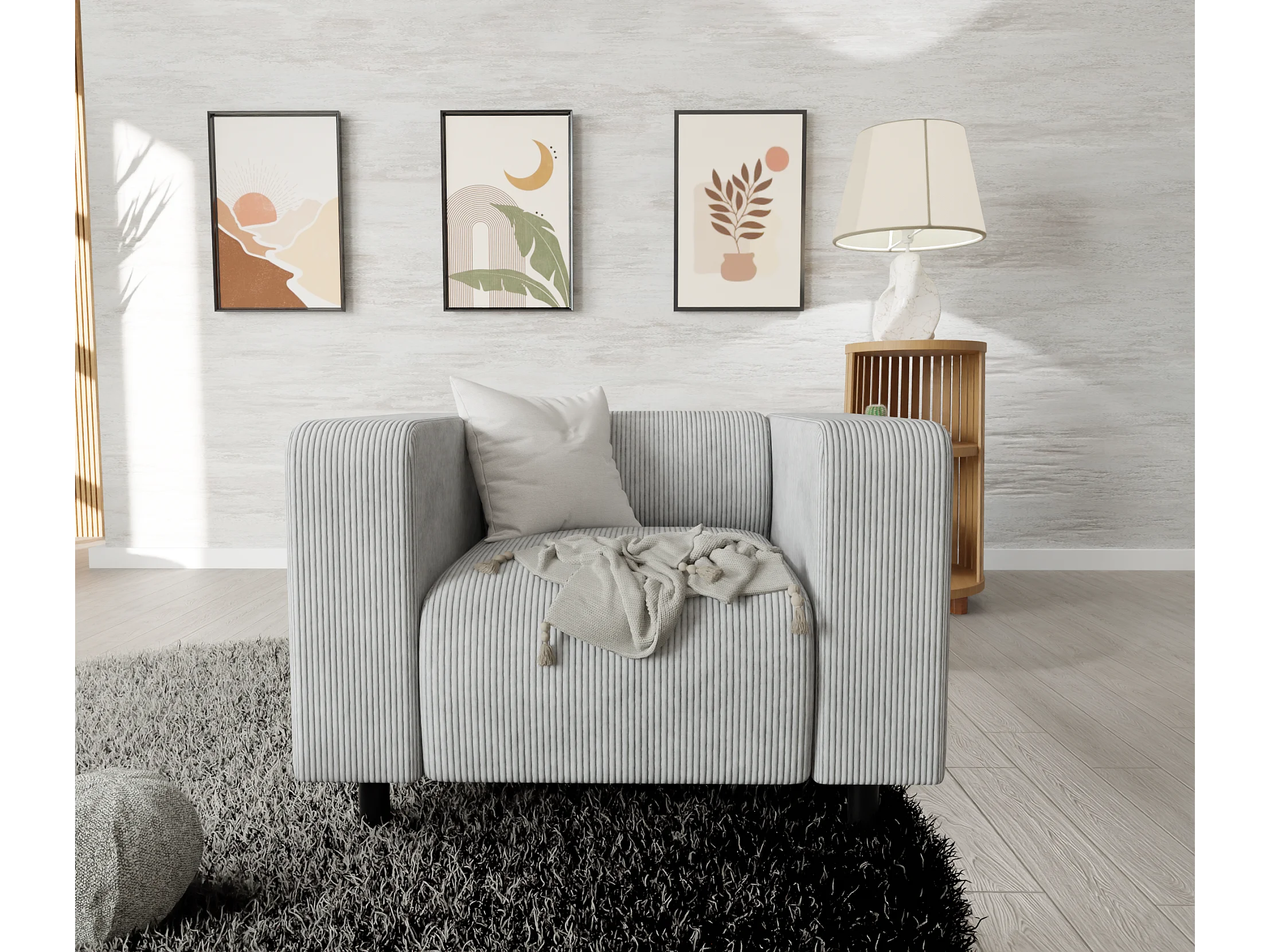 Thora - Modernes Sessel aus Hellgrau Cord-Stoff mit bequemem Sitz