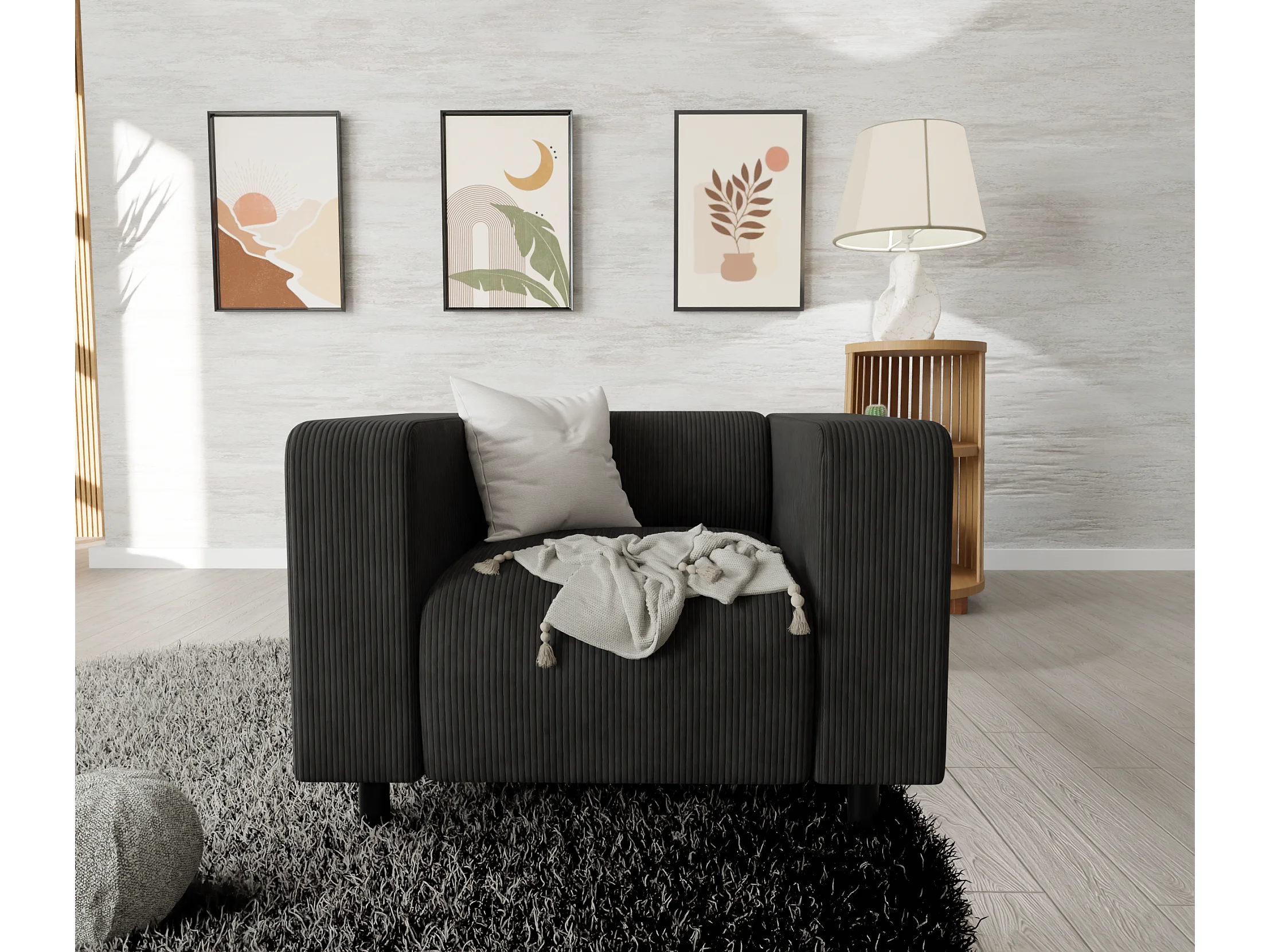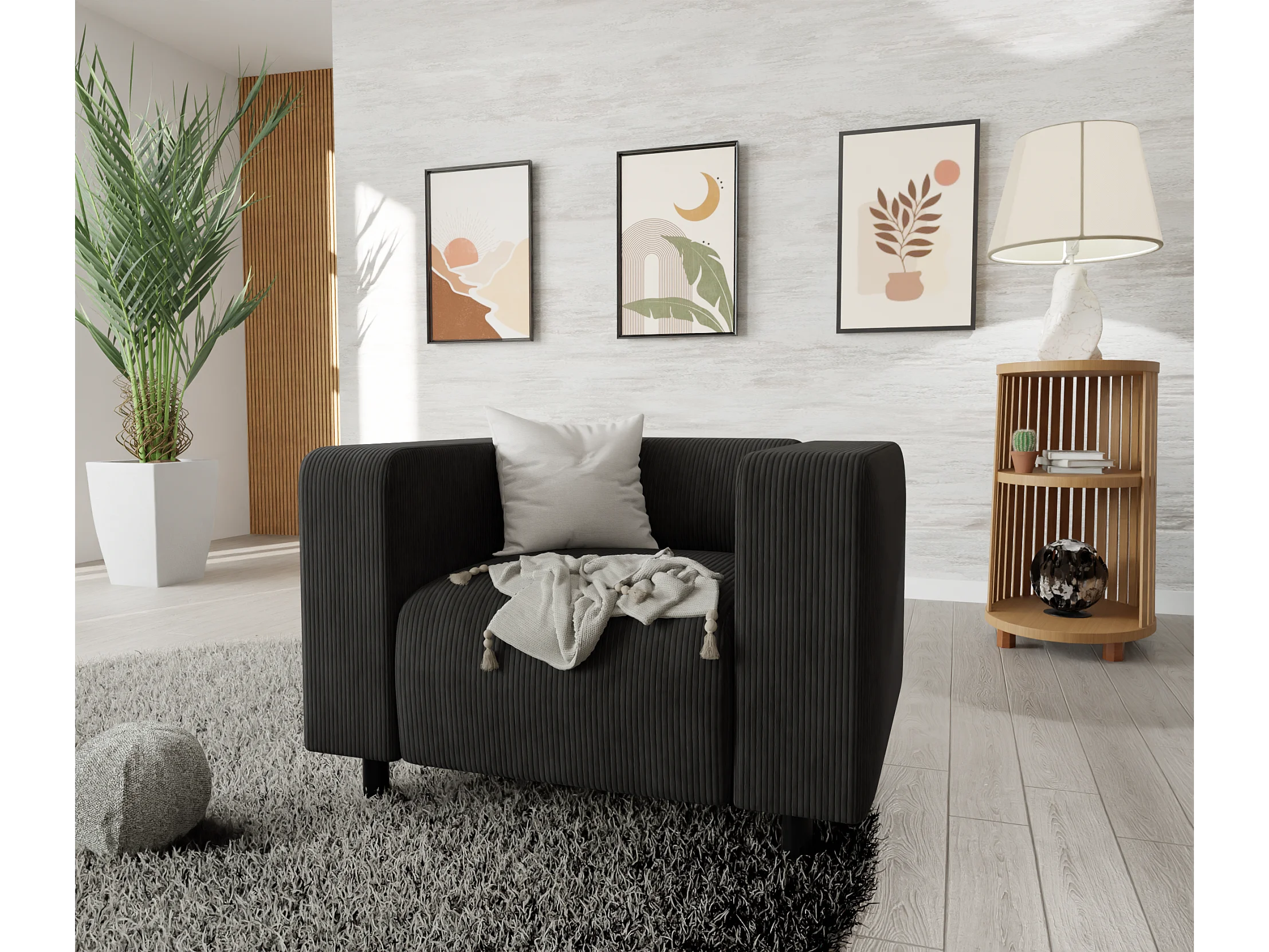 Thora - Modernes Sessel aus Schwarz Cord-Stoff mit bequemem Sitz