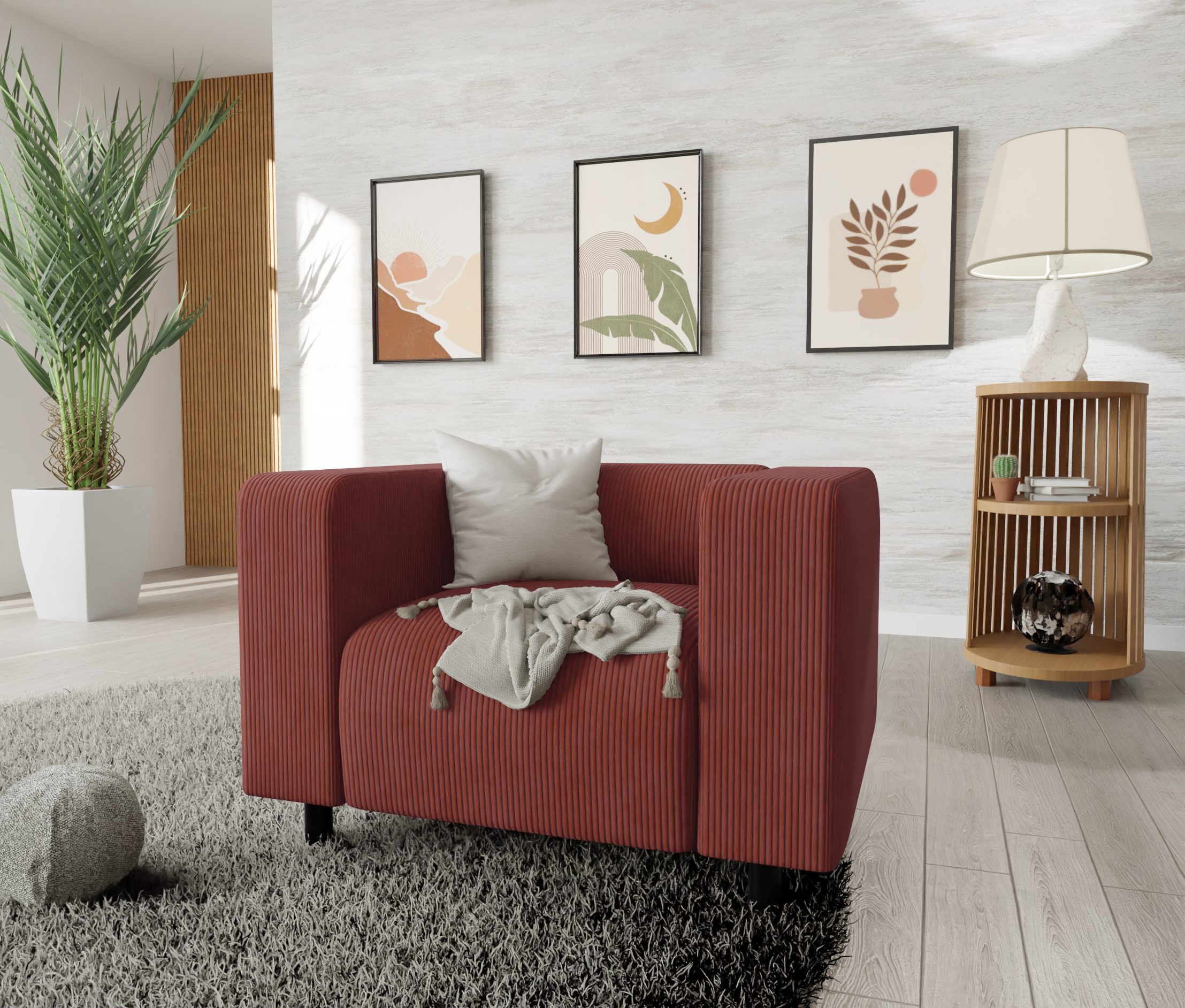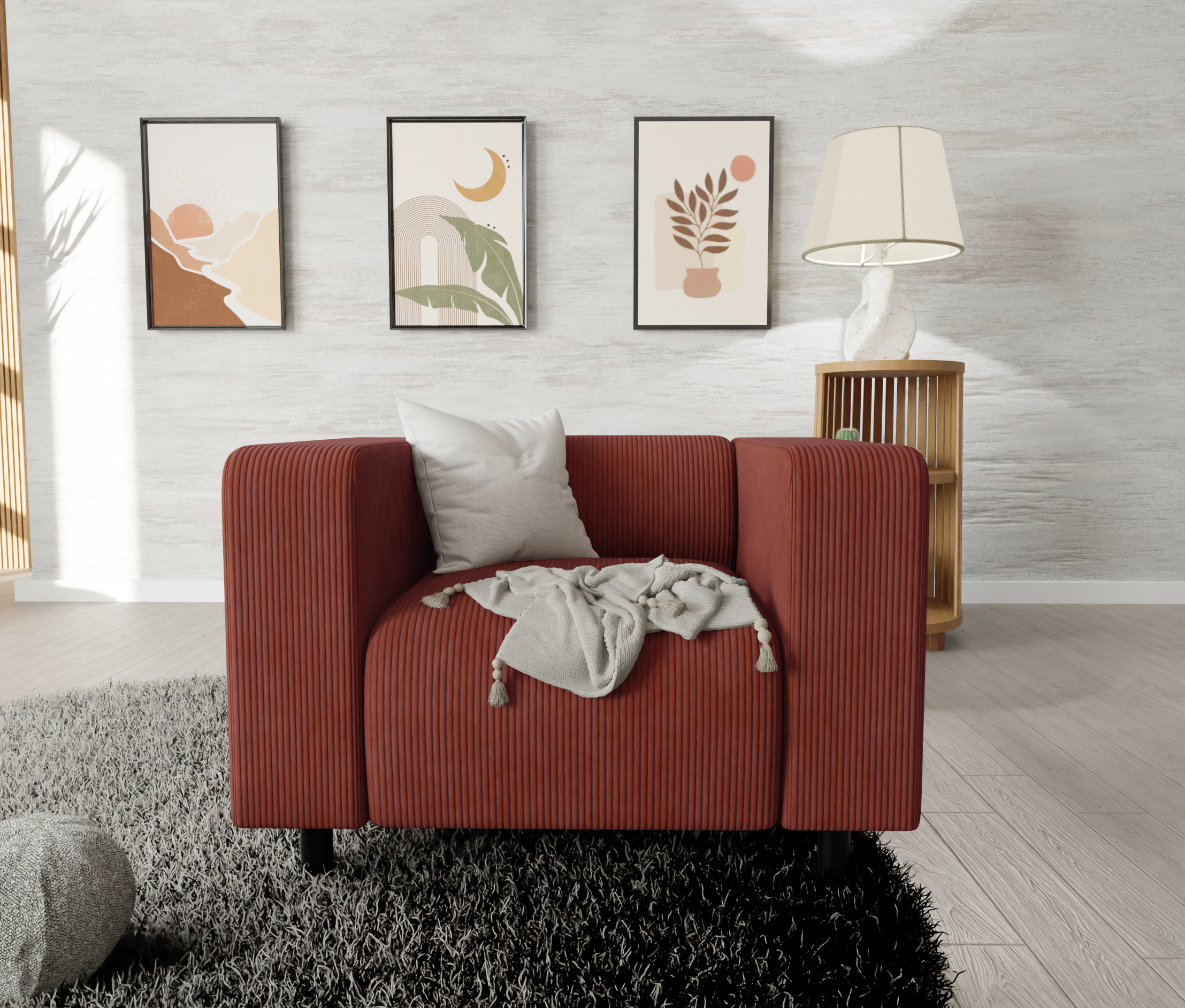 Thora - Modernes Sessel aus Terrakotta Cord-Stoff mit bequemem Sitz