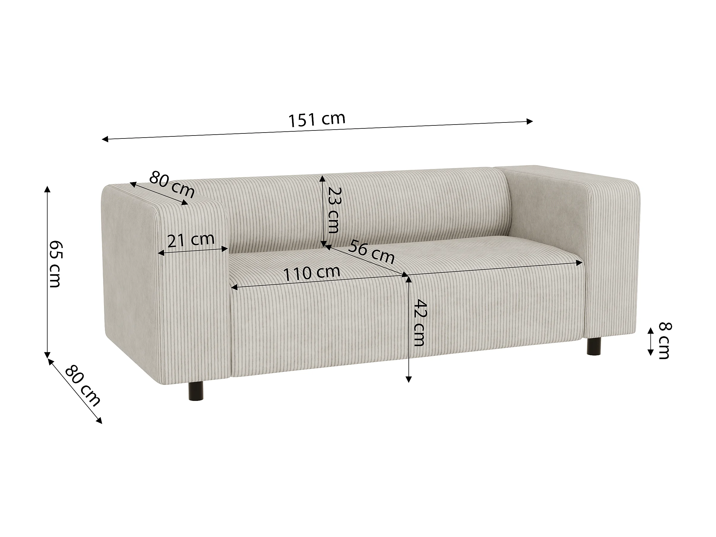 Thora - Modernes Sofa 2 sitzer aus Beige Cord-Stoff mit bequemem Sitz