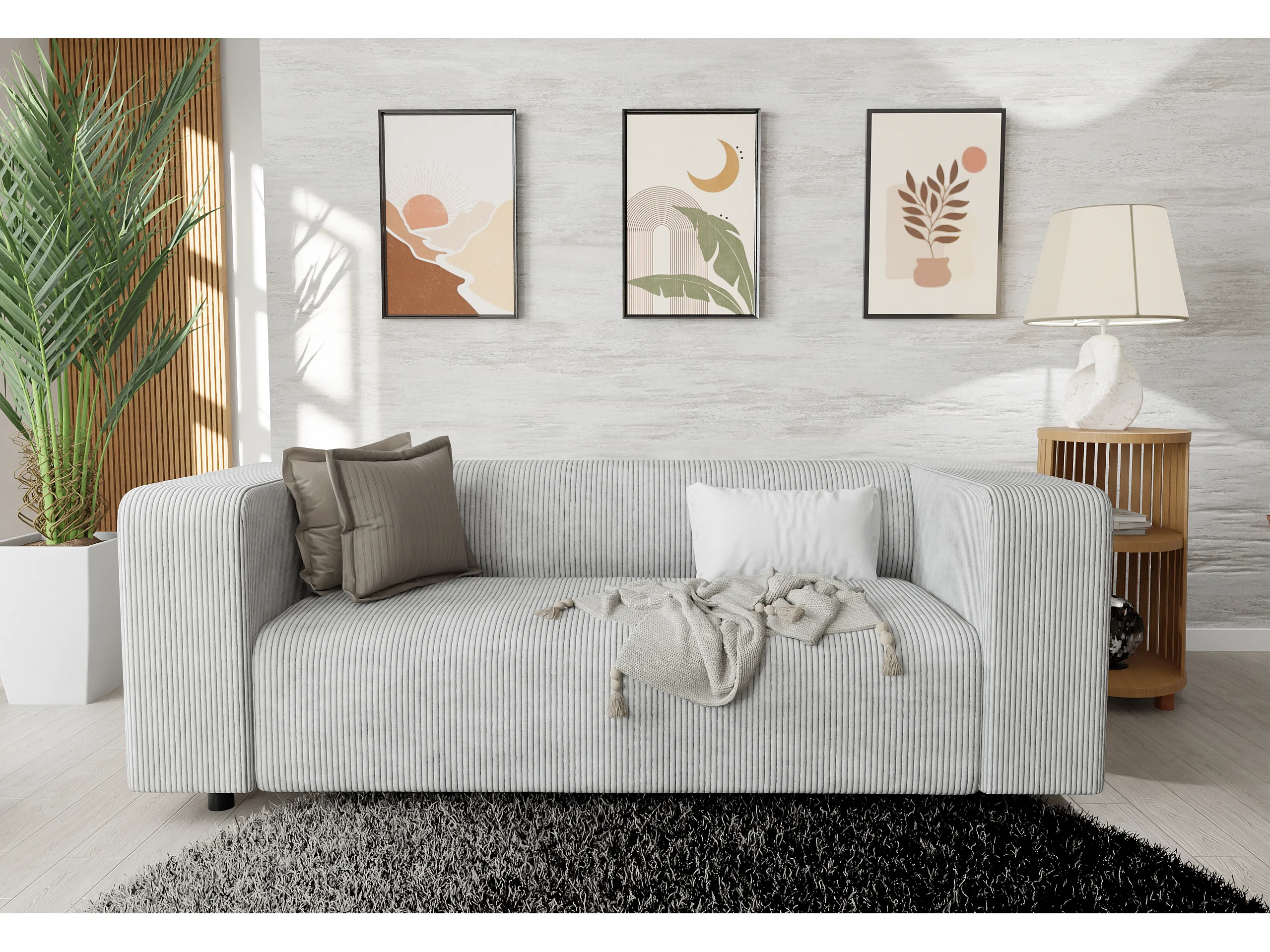 Thora - Modernes Sofa 2 sitzer aus Hellgrau Cord-Stoff mit bequemem Sitz