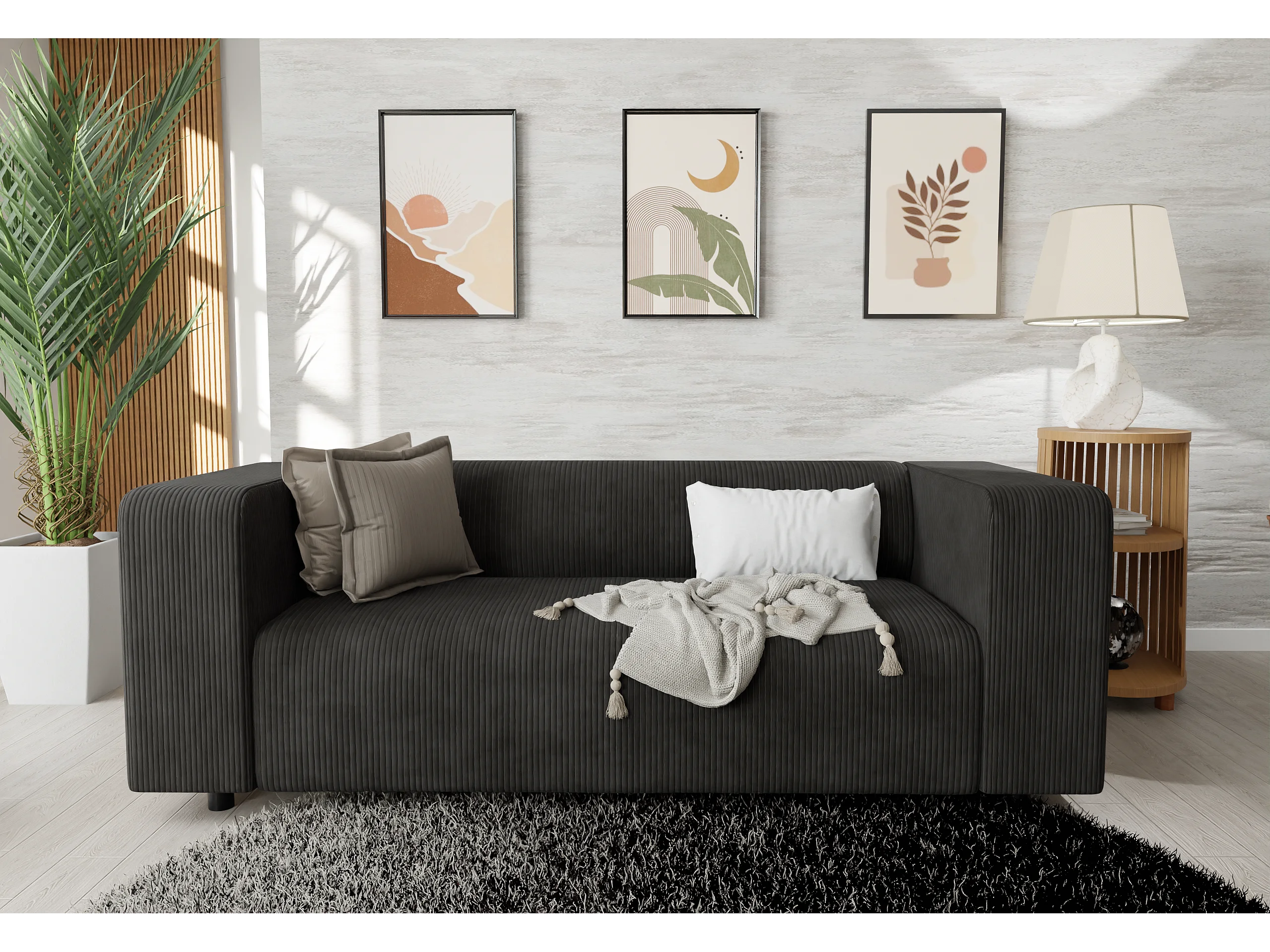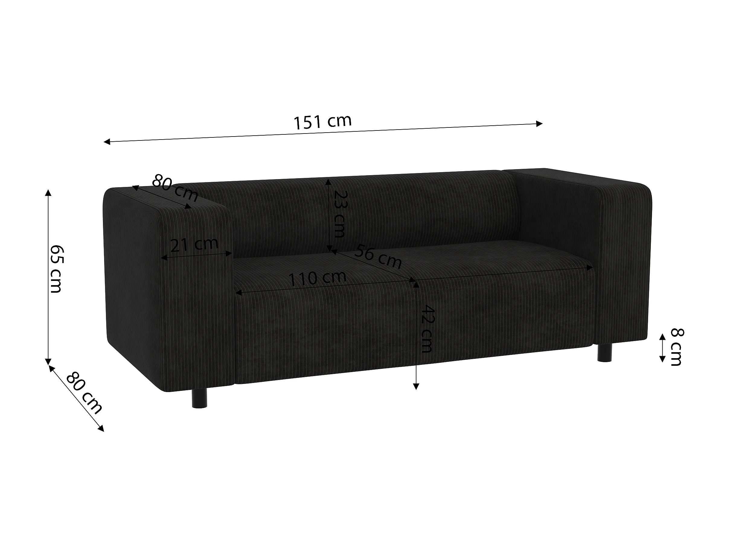Thora - Modernes Sofa 2 sitzer aus Schwarz Cord-Stoff mit bequemem Sitz