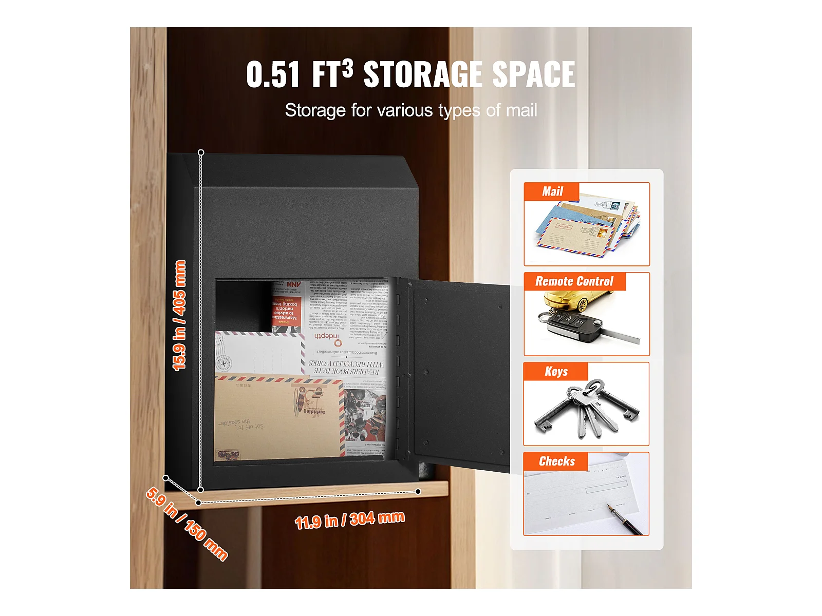 Through the Door Schlüsselkasten SucceBuy 30.5x15.2x40.6cm Briefkasten mit Schlüsselschloss, Schwarz
