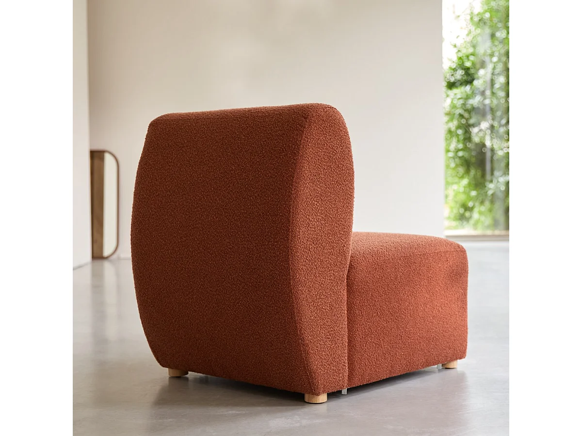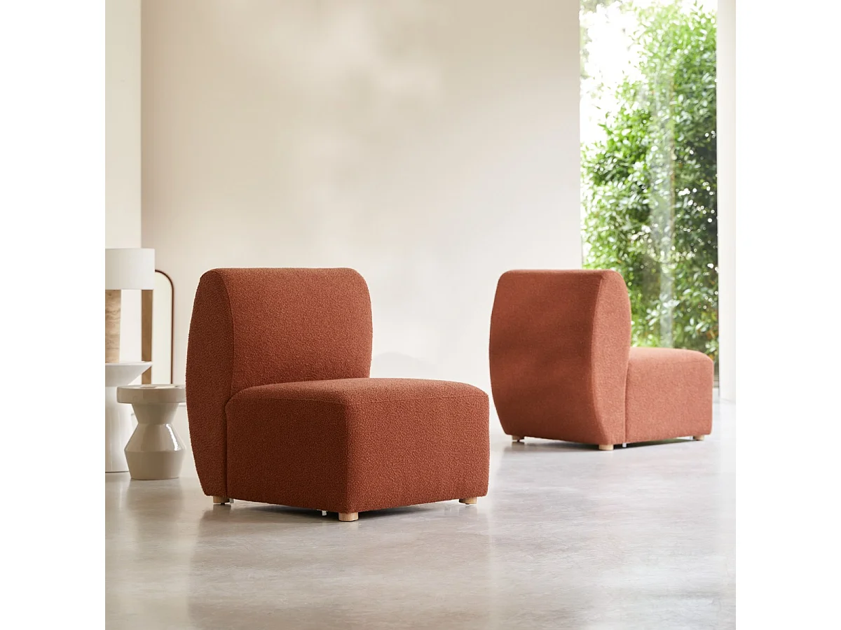 Tiefer Modulsessel Swann aus massivem Akazienholz mit terrakottafarbenem Stoffbezug