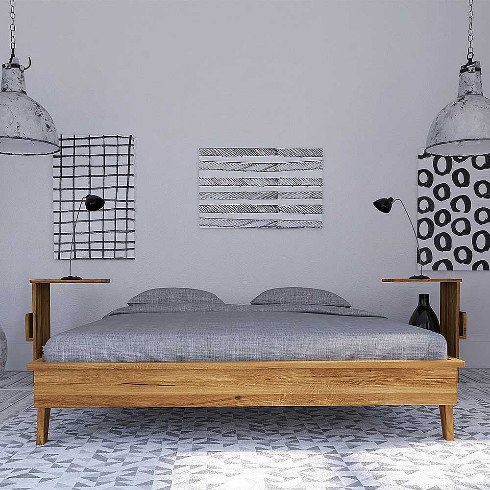 Tiefes Bett aus Wildeiche Massivholz Kopfteil (dreiteilig)