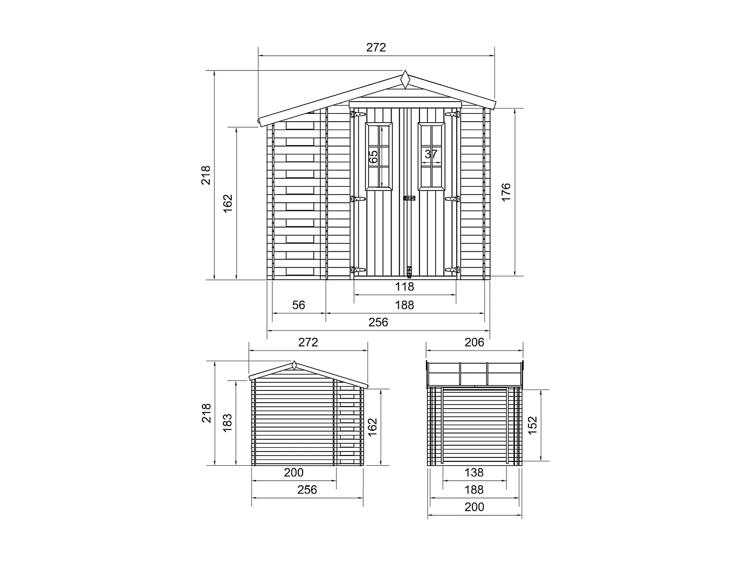 Gartenhaus holz mit brennholzschuppen mit boden imprägnierte - 3.53+0.97 m² - M386C+M386G
