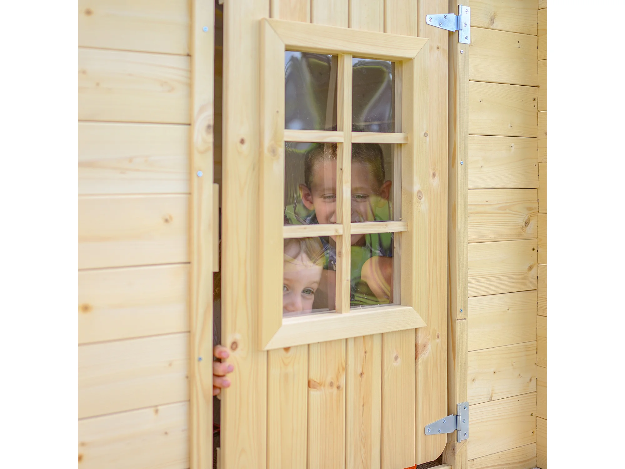 Kinderspielhaus aus holz (die dachfarbe ist blau) - 111x114xH121 cm / 0.9 m² - M570M-1