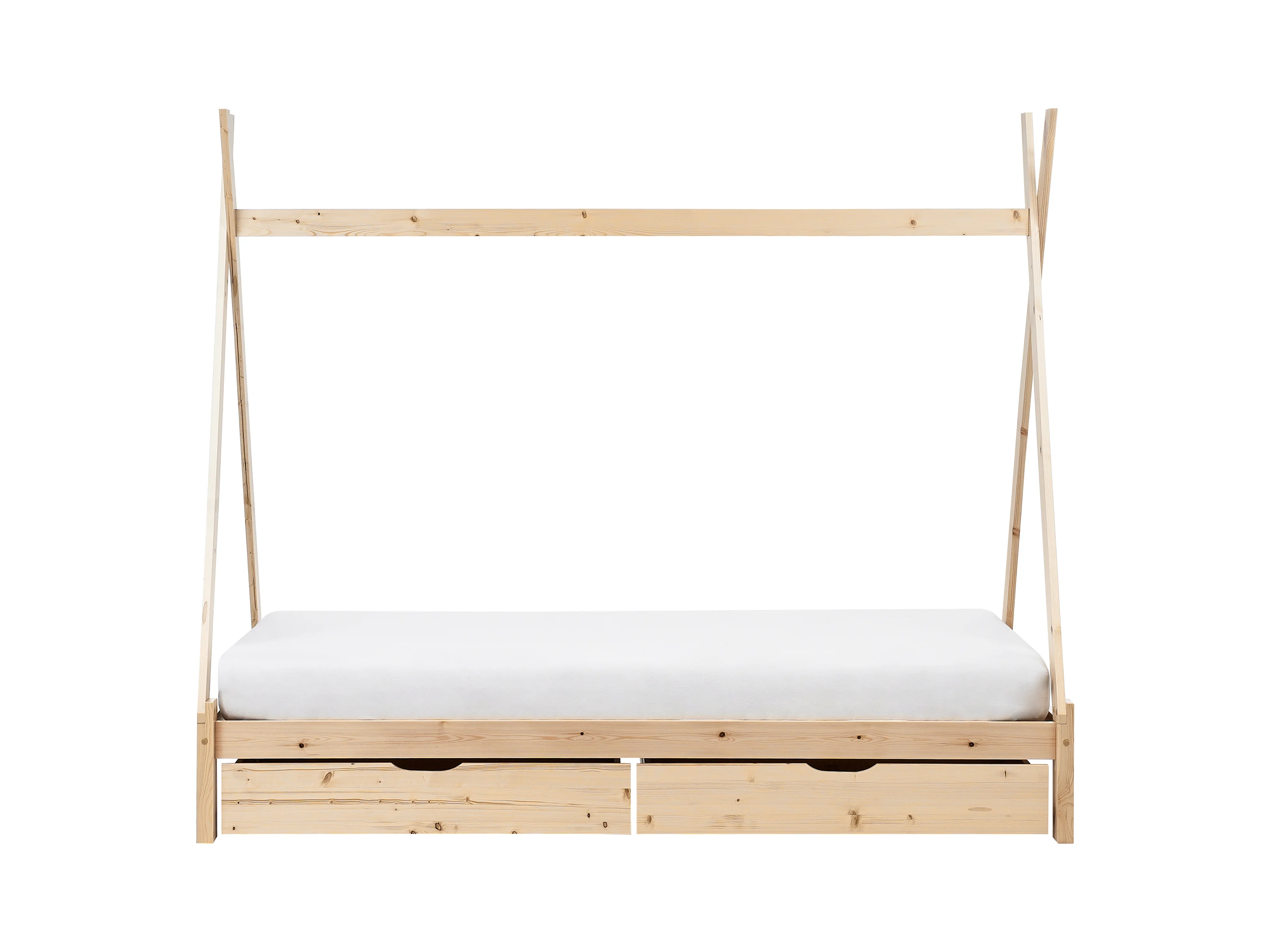 Tipi-Kinderbett mit Schubladen Kiefernholz hellbraun Lattenrost 90 x 200 cm DEVAY