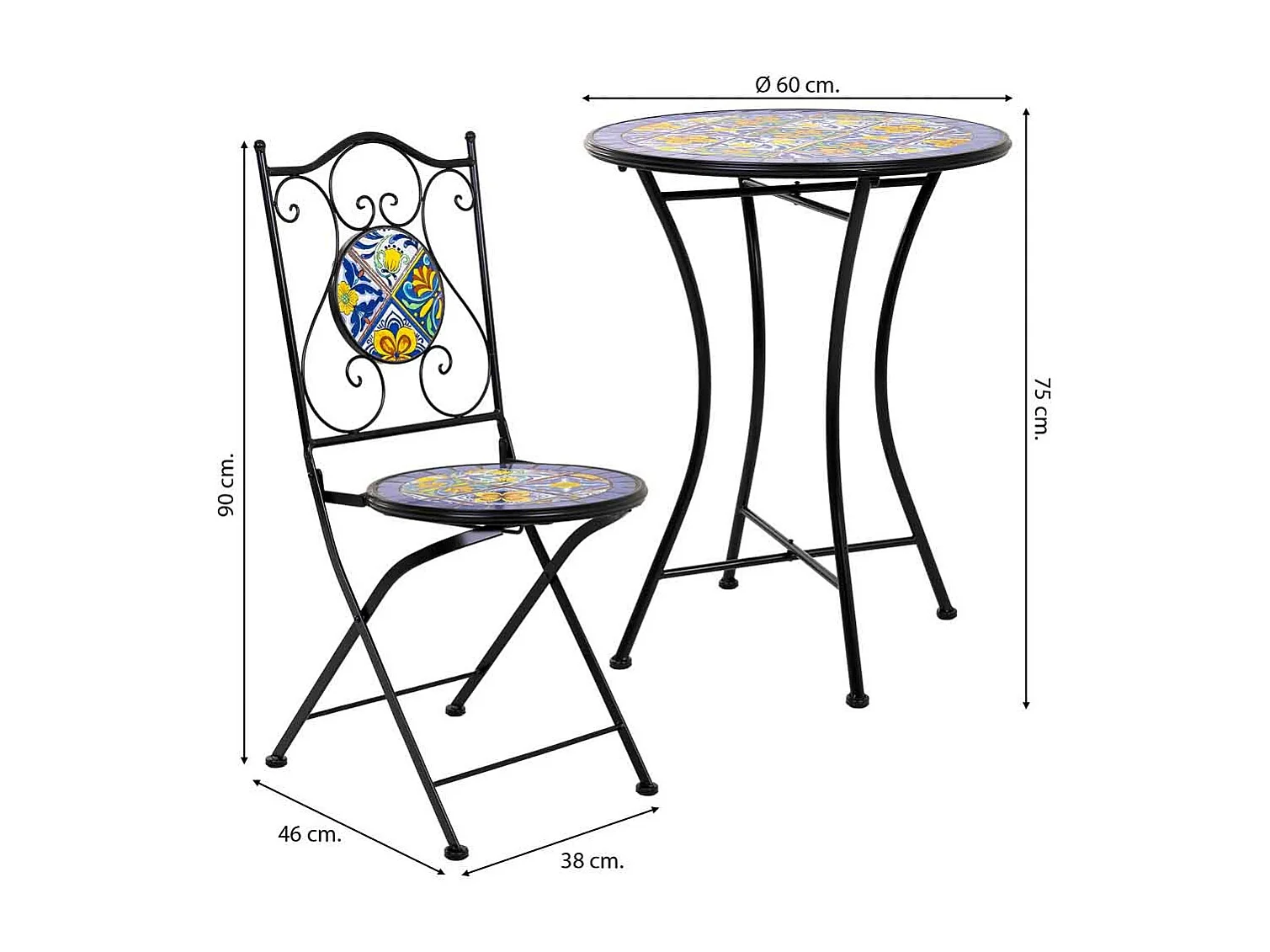 Tisch +2 Stühlen aus Schmiedeeisen, D60x75/Stühle D38x46-90h Schwarz