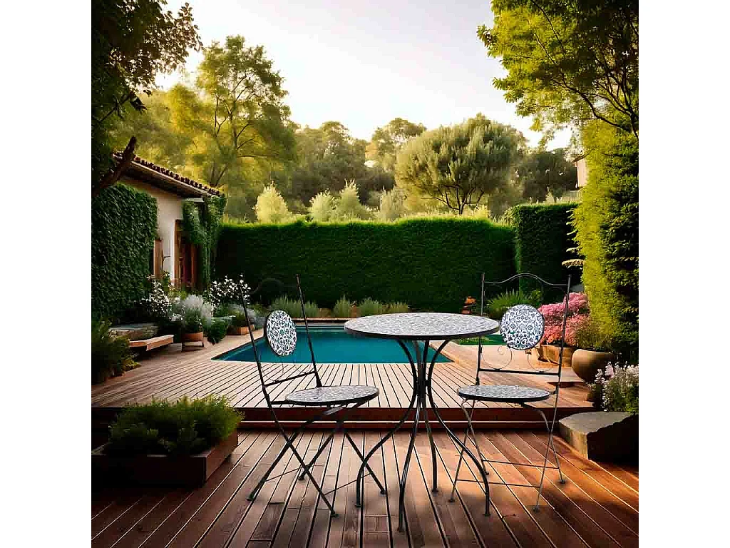 Tisch + 2 Stühlen aus Schmiedeeisen, D60x75/Stühle D38x46-90h Schwarz