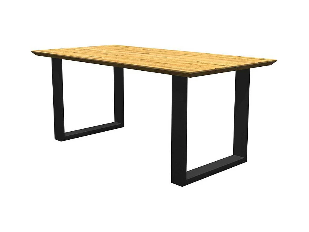 Tisch aus Massivholz und Metall mit Schweizer Kante Bügelgestell