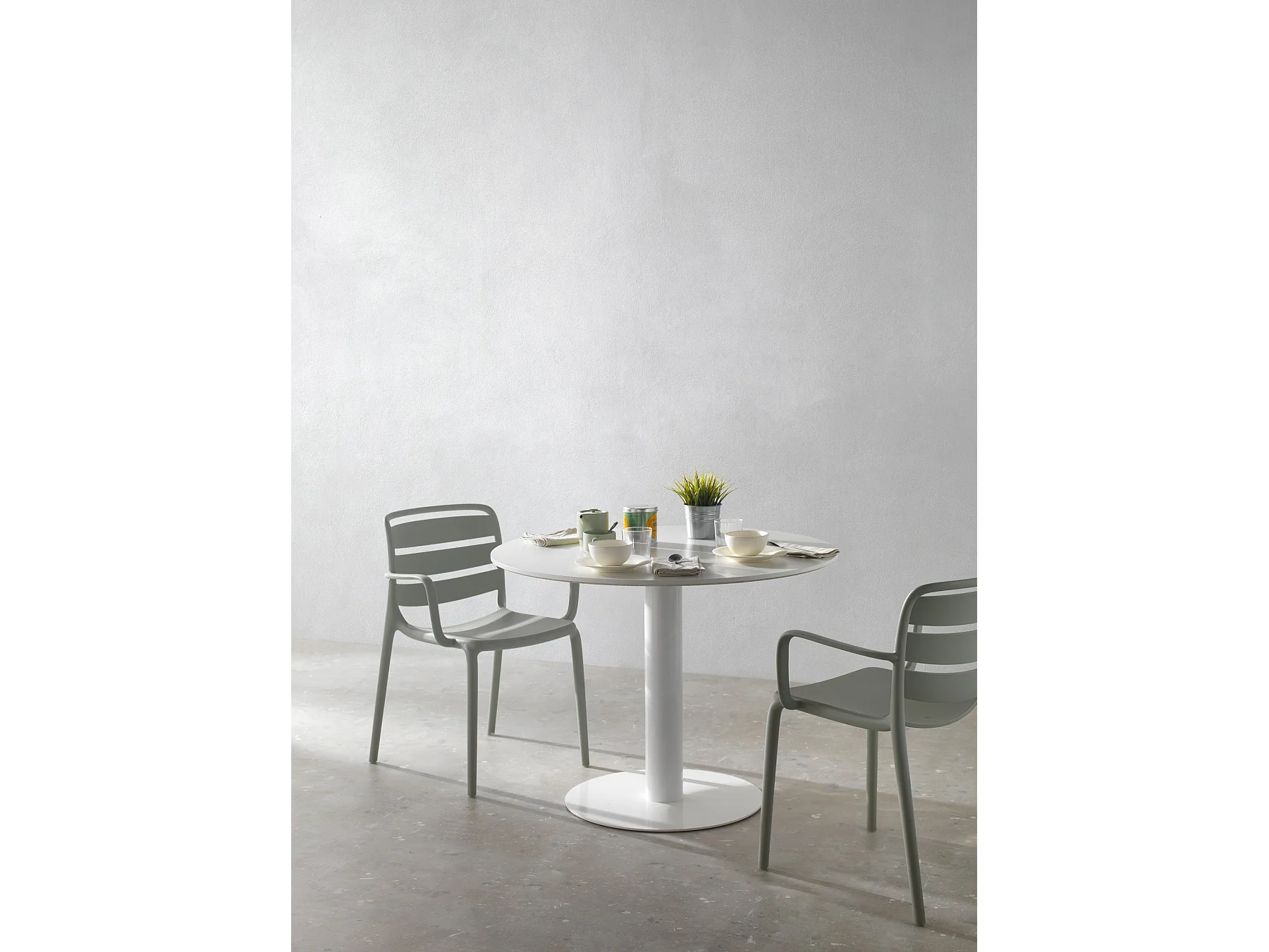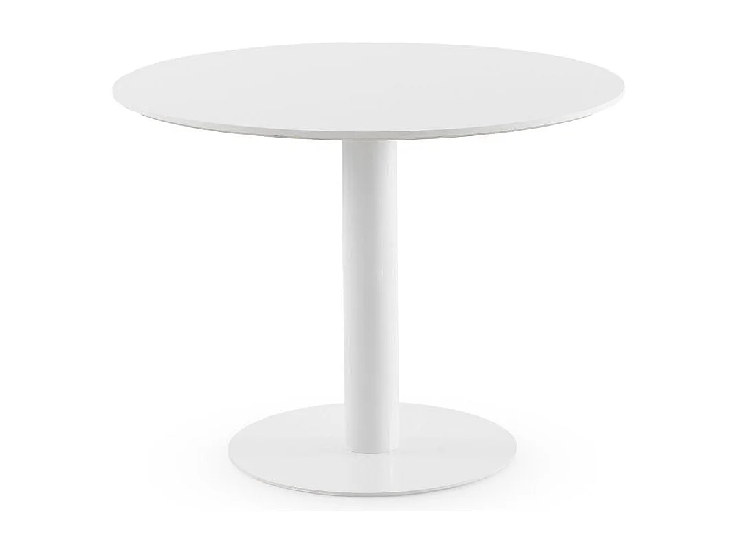 Tisch aus Melamin, Weiß, Durchmesser 100, Metallfuß in Weiß