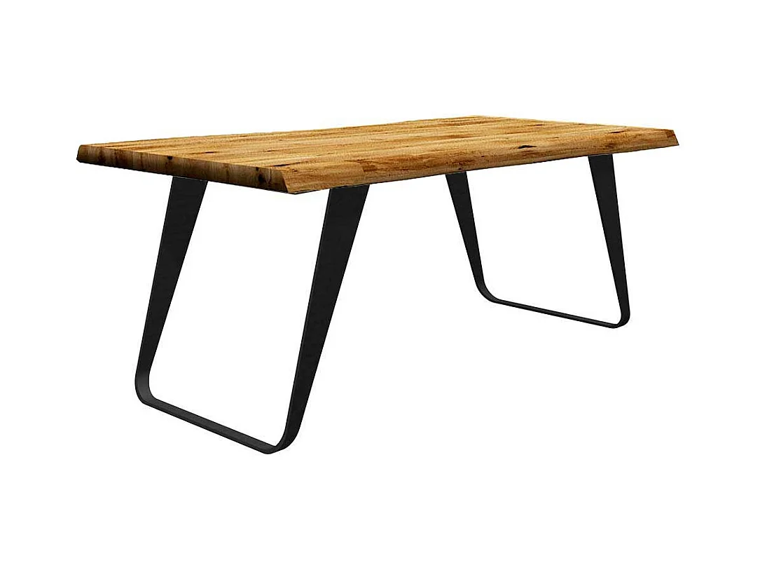 Tisch Baumkante Bügelgestell aus Eiche Massivholz Metall