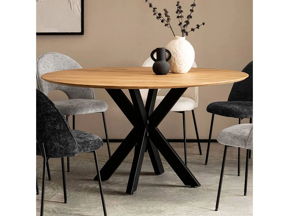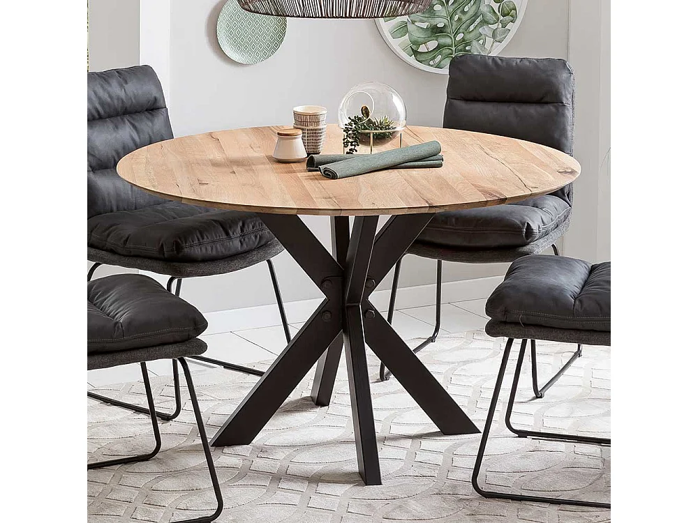 Tisch Esszimmer aus Eiche Massivholz Spider Gestell aus Metall