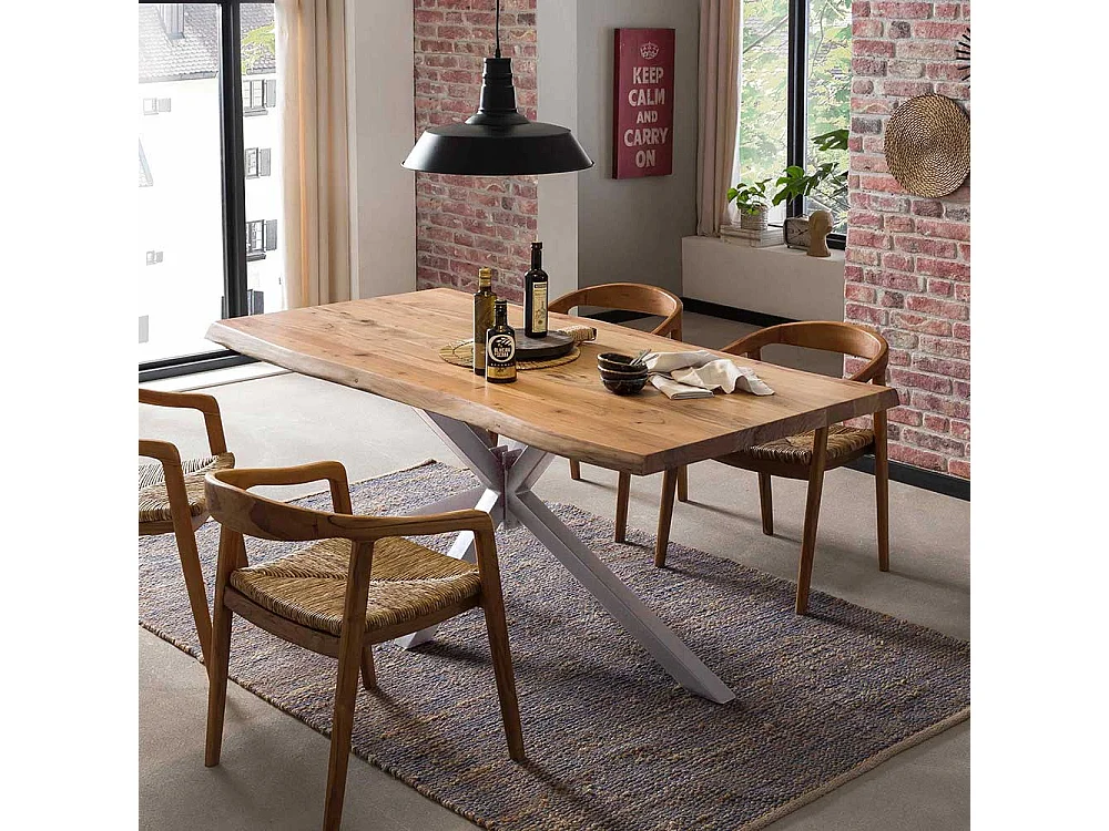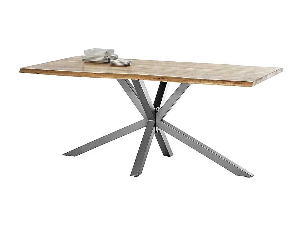Tisch Esszimmer in Akazie und Altsilberfarben Spider Gestell