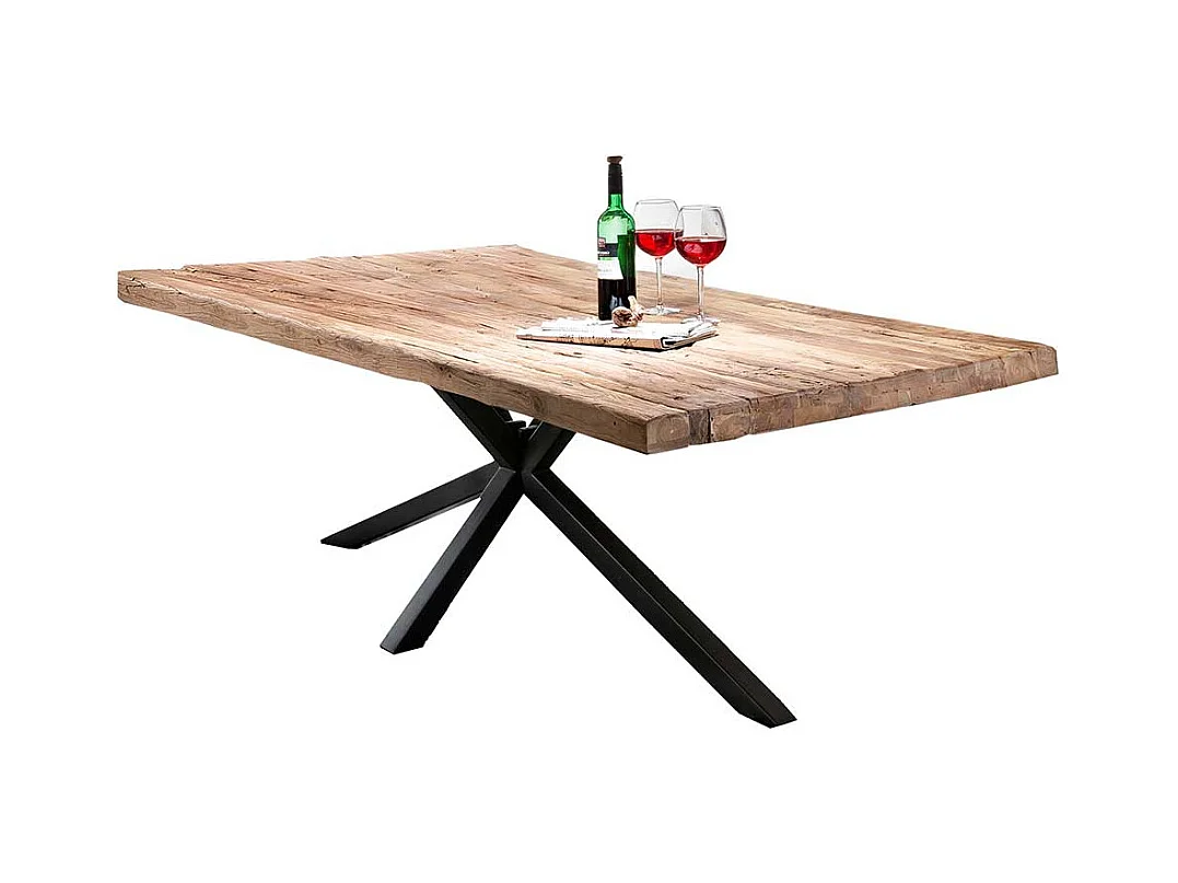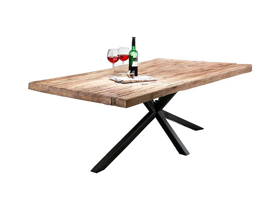 Tisch Esszimmer in Schwarz und Teakfarben Massivholzplatte