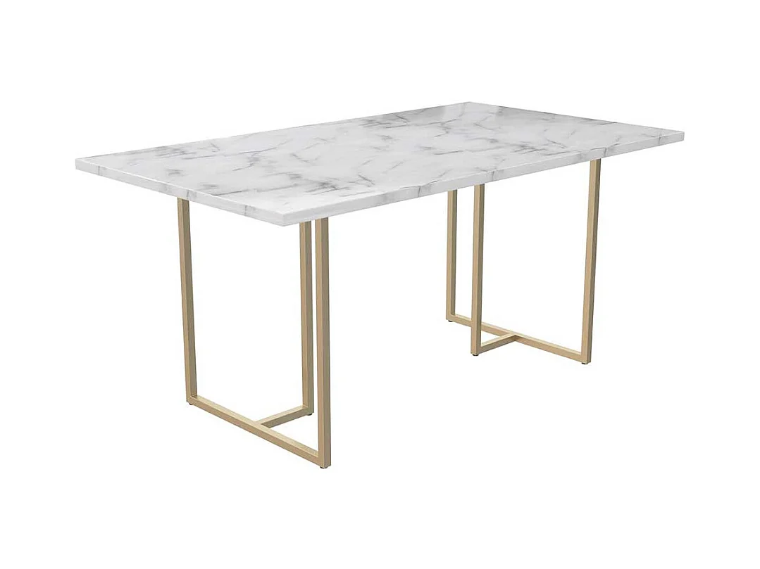 Tisch Esszimmer modern in Weiß und Gold Metall Bügelgestell