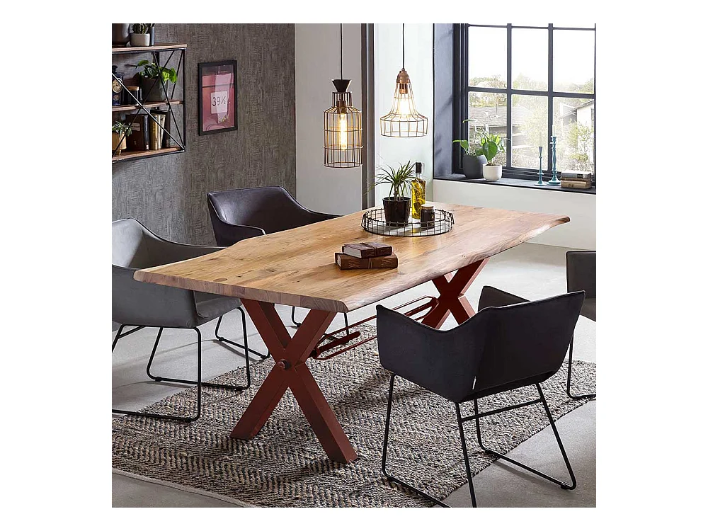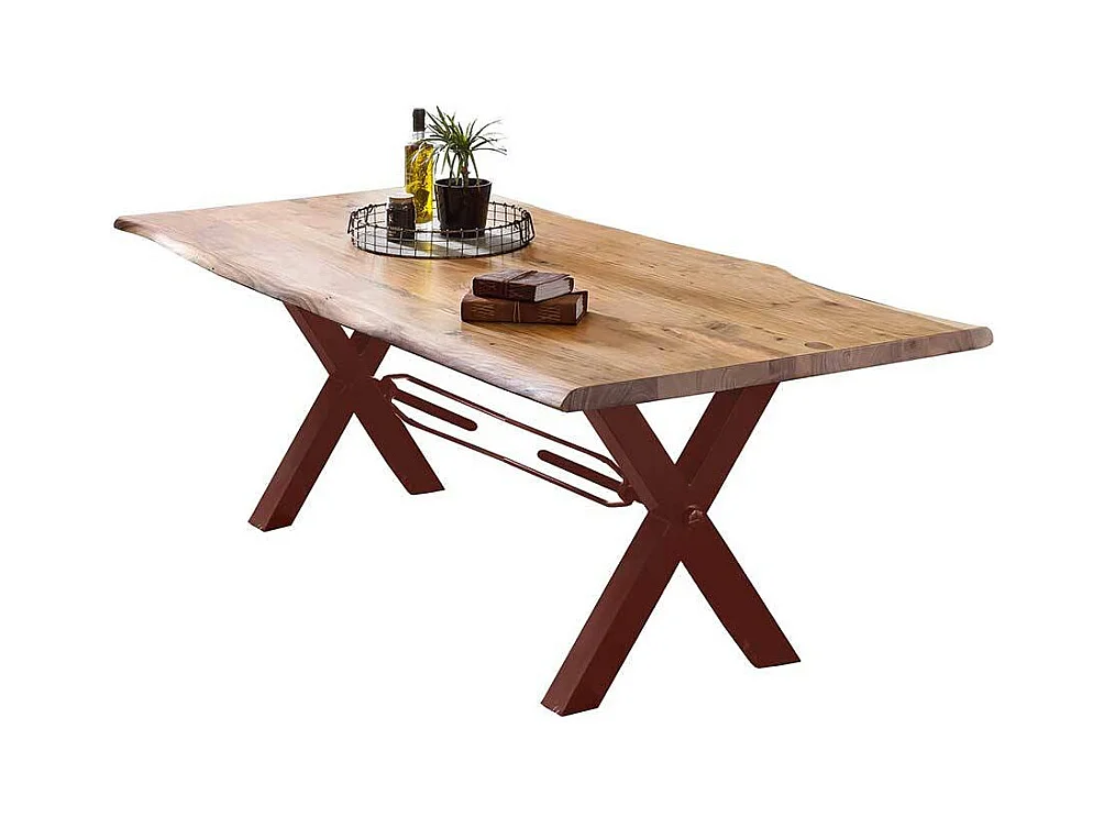 Tisch Massivholz Baumkante in Akaziefarben und Braun lackiert