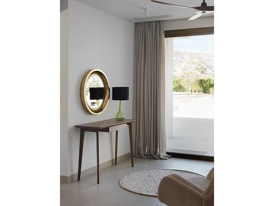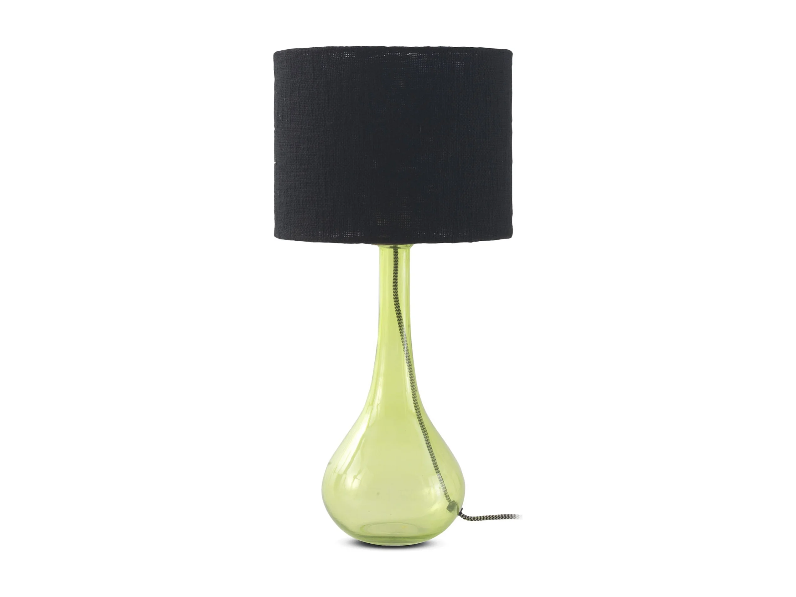 Tischlampe aus grünem Glas mit Lampenschirm aus schwarzer Baumwolle